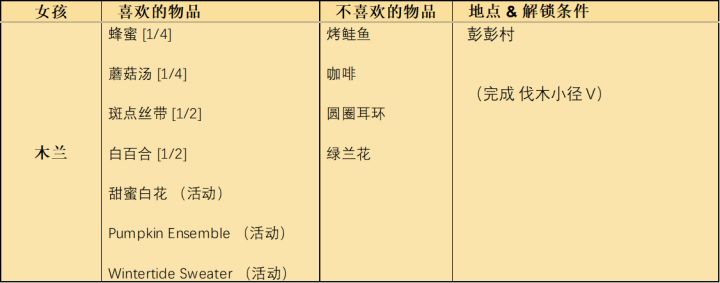各位玩家新年好呀*´∀`)´∀`)*´∀`)*´∀`)最近看到不少新人坑的骑士们在问妹子喜欢什么,春节闲来无事做了翻译,原文在此:。由于 TapTap 不能插入表格,就用图片替代吧~由于前两个活动的时候我还没入坑,所以我也不知道怎么翻译了啦 ╰( ̄▽ ̄)╭大家看了觉得有帮助的话,记得点赞收藏哦o( ̄▽ ̄)d关于游戏其他的问题,欢迎多多留言,给我下一个攻略的灵感/