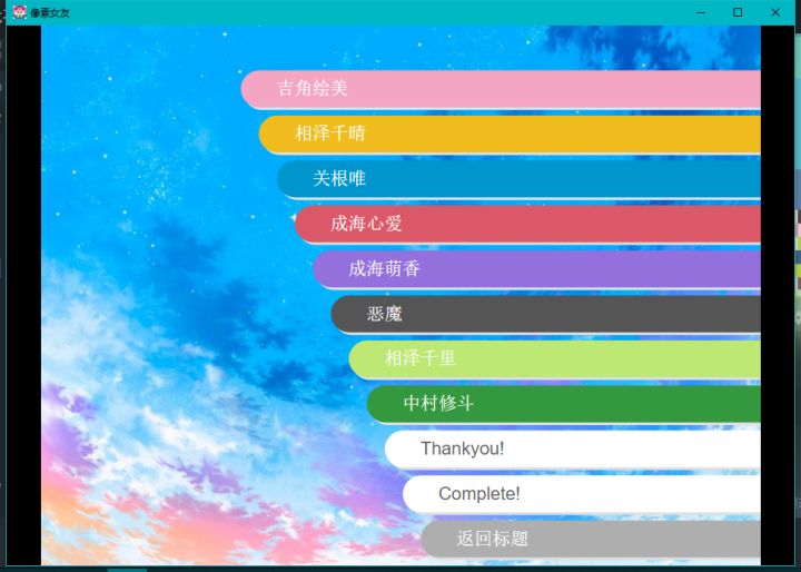 针不戳,我老婆们都太可爱了,花一两个小时就全结局通关(可能因为玩过像素男友所以这对我来说难度不大),伪娘太可爱了5555(*/∇\*),话说官方什么时候可以出中村同款挂坠和伪娘同款布偶,要出我买爆!