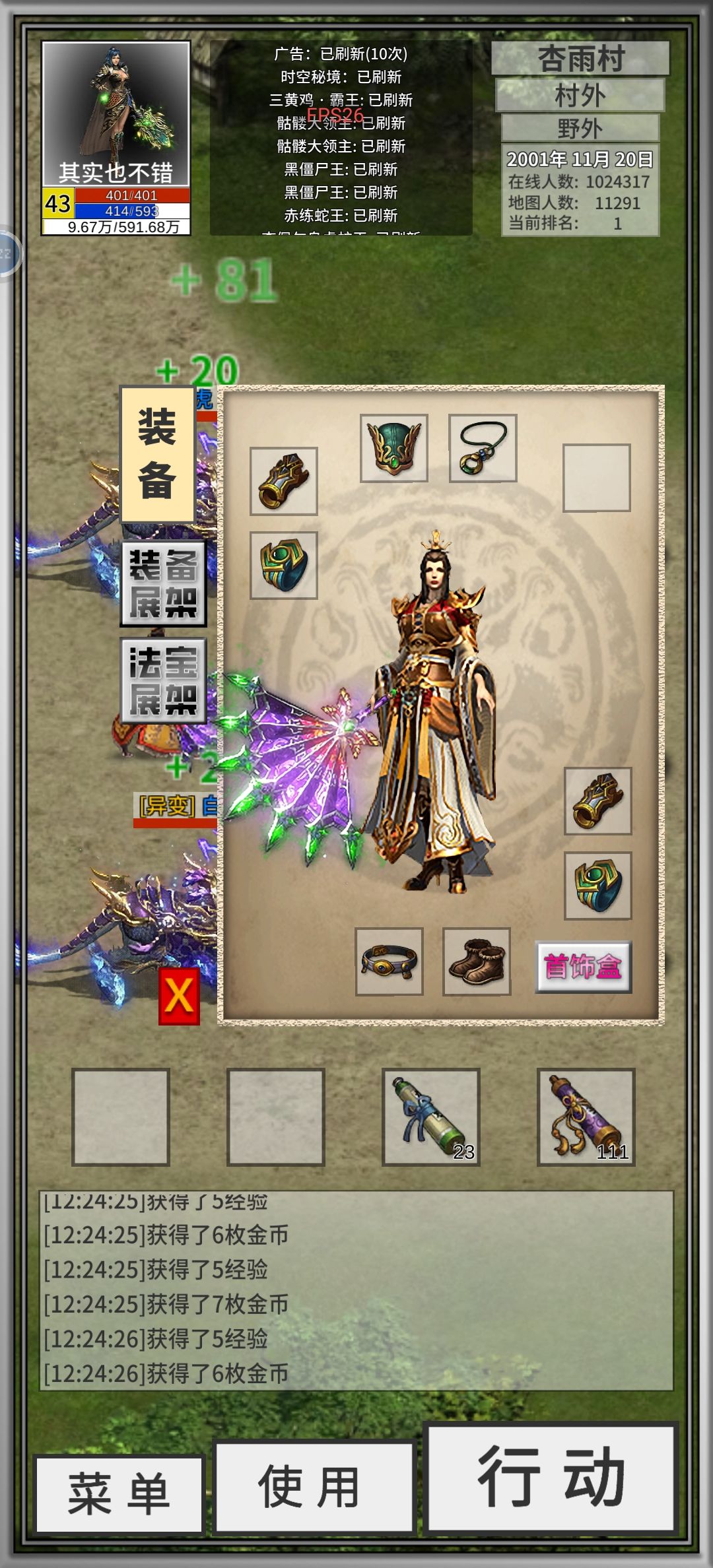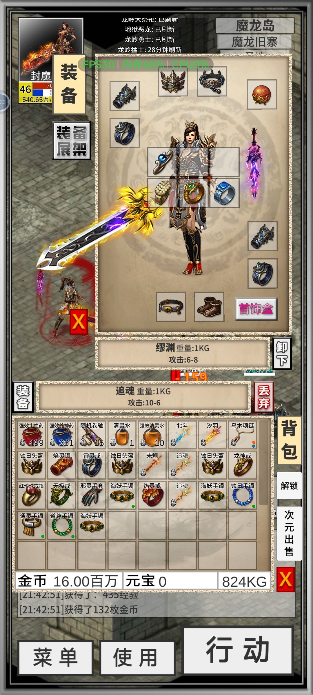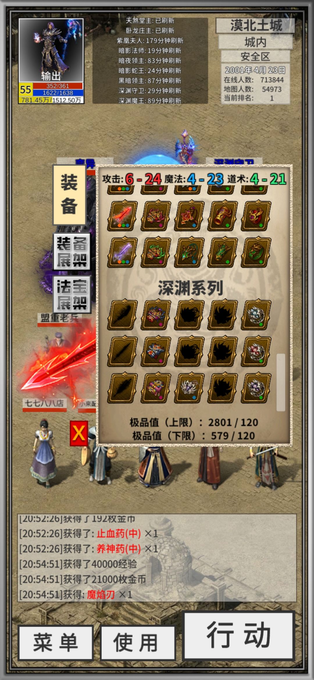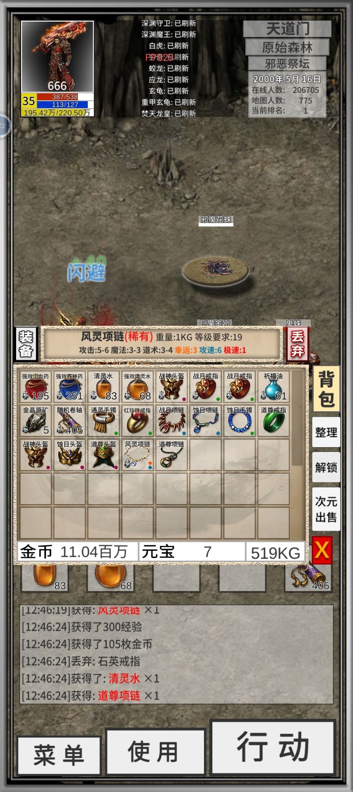 先看图。目前 43 级道士一名,大概 37 8 级已经血月套了。但是皓月套一直因为道术不够,穿不上。到论坛查攻略也含糊其辞,没有头绪。在自己摸索下总结如下。先刷 Boss,把极品凑齐。穿不上高等级装备的话,有两个努力方向。1.到商城刷特戒。可以加道术。但是刷特戒得看脸看运气。我最多一次刷了大概 40 次,一个没出。单刷一种特戒也怼了两三次,每次 20 把左右。啥也没有。目前共 3 个特戒,一个九鼎
