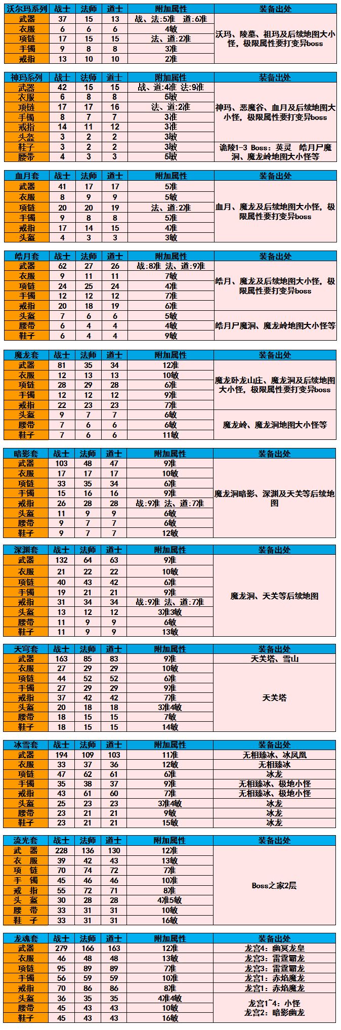 前面前面几套装备现在已经沦为过渡了,但是新人还是可以参考一下。 以前的老版本的时候,里面的头盔腰带鞋子,都是花老大的力气去收集属性高的。 此表我只是按收集的最高属性数据做的收集列表,并不是一定是极限值。#攻略#单机游戏#新手攻略#游戏杂谈#氪金戒断所