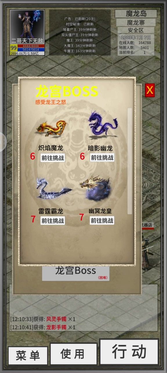 注意看视频,第一个对手不知道什么情况攻速特别快,而且特别硬,我一身雪原装590 道术 40 转生怎么可能打不赢这群装备没更新的? 第二个对手才是正常人。 另外,竞技场什么时候更新? 1.我查了下对手装备,没有一个雪原装的 2.上运9 属性的没几个,就算有运 9 的还是低级项链低级武器,就算打到了要来何用?那去竞技场的意义是什么? 3.