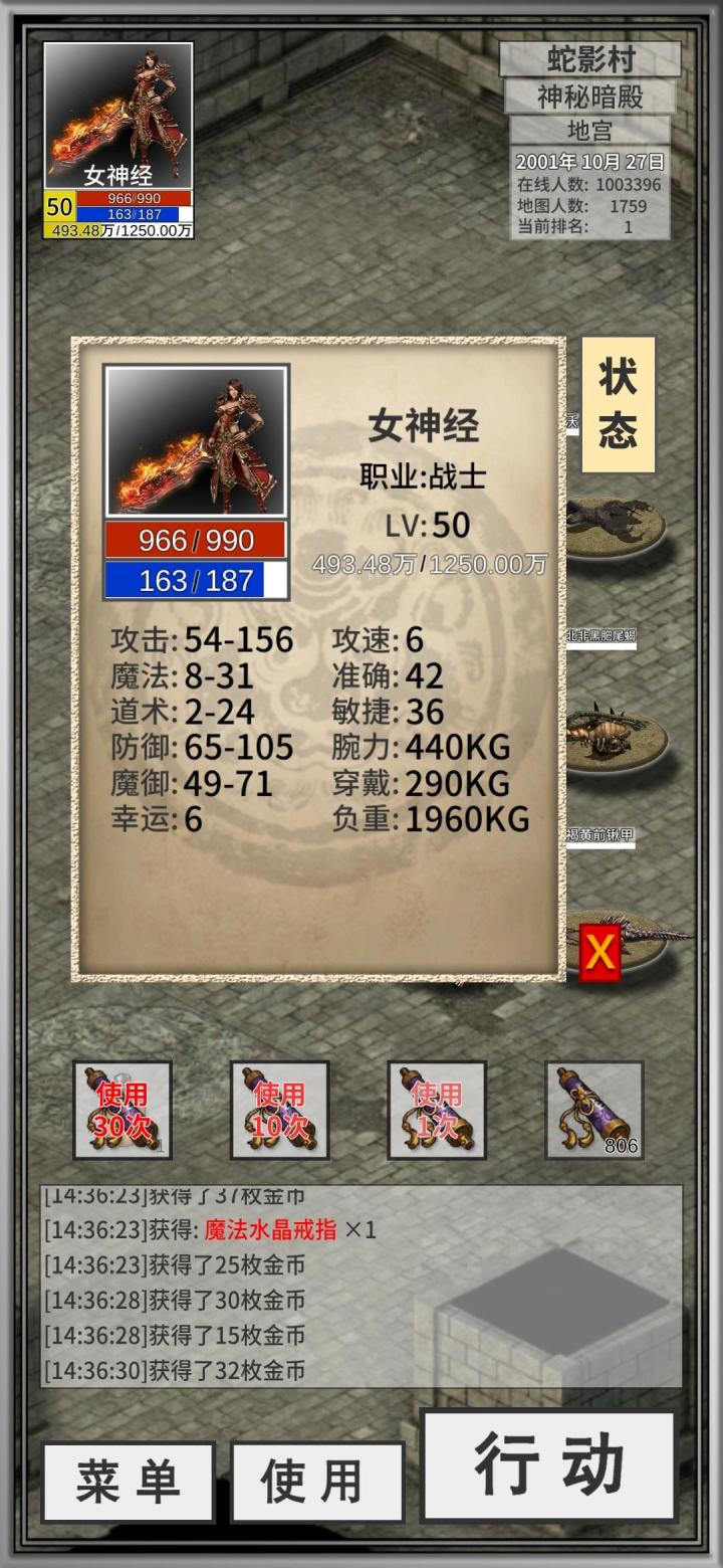 1、刷到风灵套(手镯,戒指,项链)一定要留下来,尤其是玩战士的话,因为后期需要风灵套上的极速,拿来转移到自己在用的装备上(桃源村进行此操作)。2、法宝在天道门—天道神殿—昆仑(或者蓬莱)打小怪和BOSS都会爆,蓬莱怪比昆仑怪强一点。想刷法宝你得手上装备开天神剑,什么镇天神剑及以上的武器,具体看展架。刷到的法宝胚胎通过打怪升级,去怪物好打且刷新快的地方(前期就是陵墓二随机刷出密道,属性高了可以考虑去桃源村的木屋),一分钟就能升级成可以用的法宝了。好的法宝带红字属性,垃圾法宝可以放入法宝展架,增加你的属性(所有法宝属性和的十分之一,所以你放越好的法宝置换差的法宝,属性会提升)。