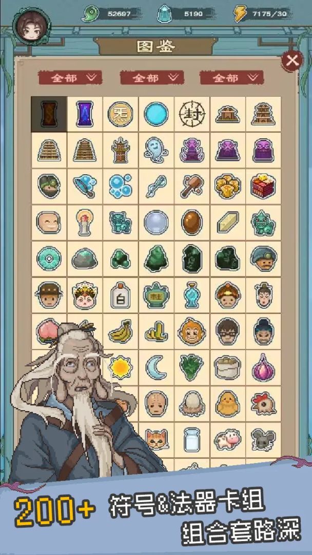 这是一款修仙像素风的卡组构筑类游戏,灵感来自于幸运房东。