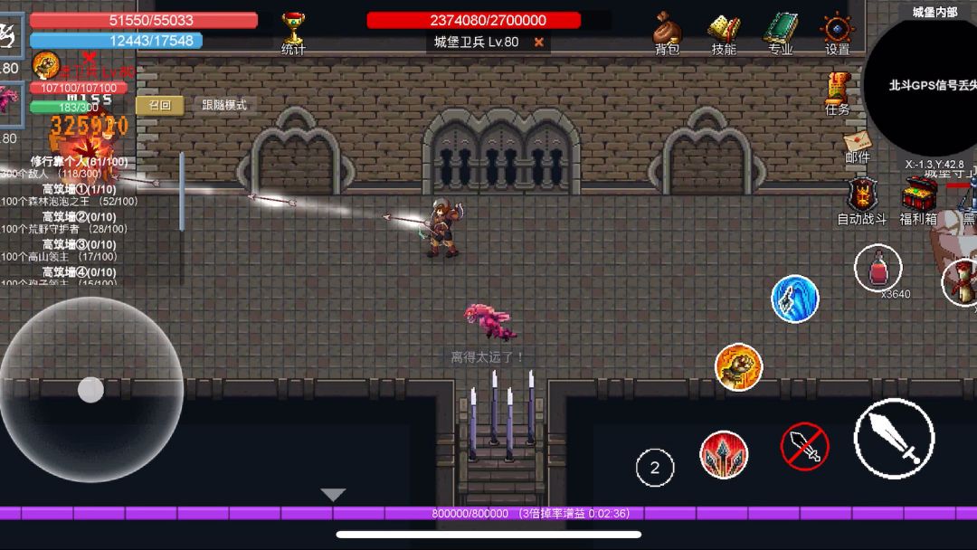 因为国王和小怪都只会平砍 所以可以走A 一身S也能刷 就是累点 装备属性:物攻 命中 暴击(因为走A靠手速 所以不需要攻速) 护符:攻速护符(保证手指按一次打一次) 宝石:全力量(反正打不到我) 原子弹:这个不用说了 想打的快就带顶级(国王箱子会出中级-顶级2000个) 需要一定的血量和防御容错 防止被国王秒(1万防御 国王暴击2万左右) 走A就是按住方向键不放 连点攻击键 点的越快走的越慢(