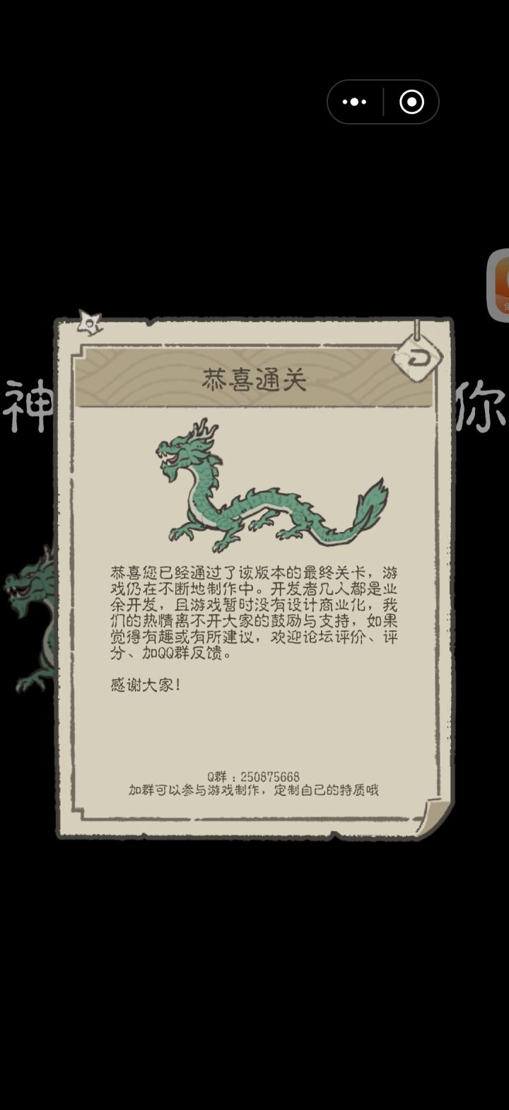 提一点小小的建议吧,做个存档功能,通过需要半个小时时间确实有点长了