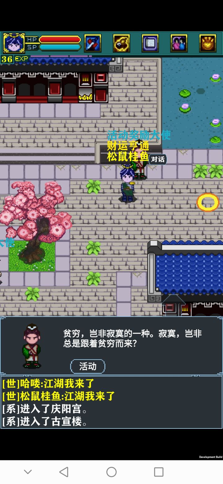 各位可以理解为这个游戏现在还是个雏形。不用去管那些NPC头上的感叹号。先去古宣楼找活动奖励大使,如图所示,然后向右走到庆阳宫,右边有三个梦境使者(副本)进入副本可爆装备,除此之外,野猪林有小怪,好像是60级的。最好的装备好像是武林装备。个人建议在等级没有上。没有好装备的前提下,就不要乱逛了,安心的刷副本吧。在副本内爆的装备。如果有不用的话,可以在副本内的铁匠处直接卖出。也可以在铁匠处购买装备,以上