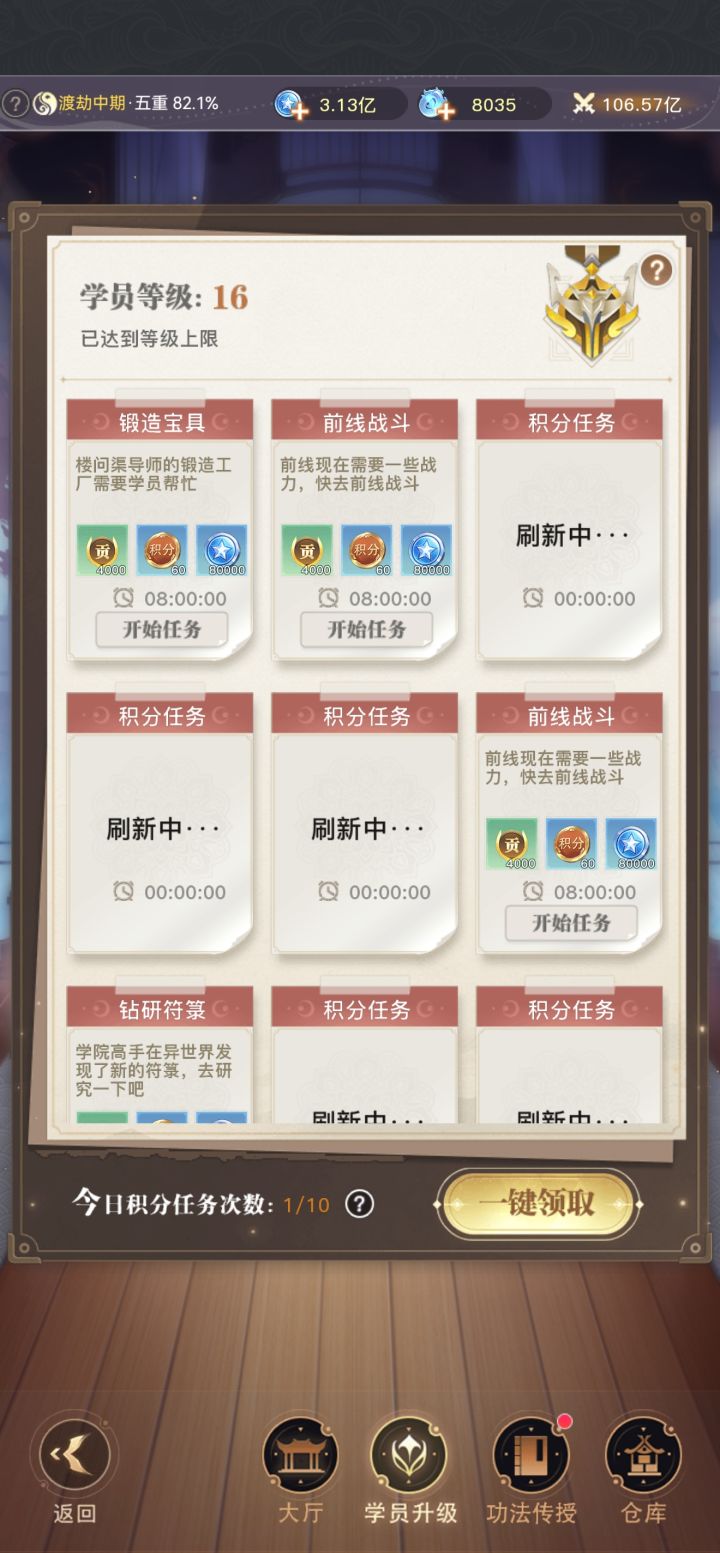 学员16级后领取不了任务,买不了药了