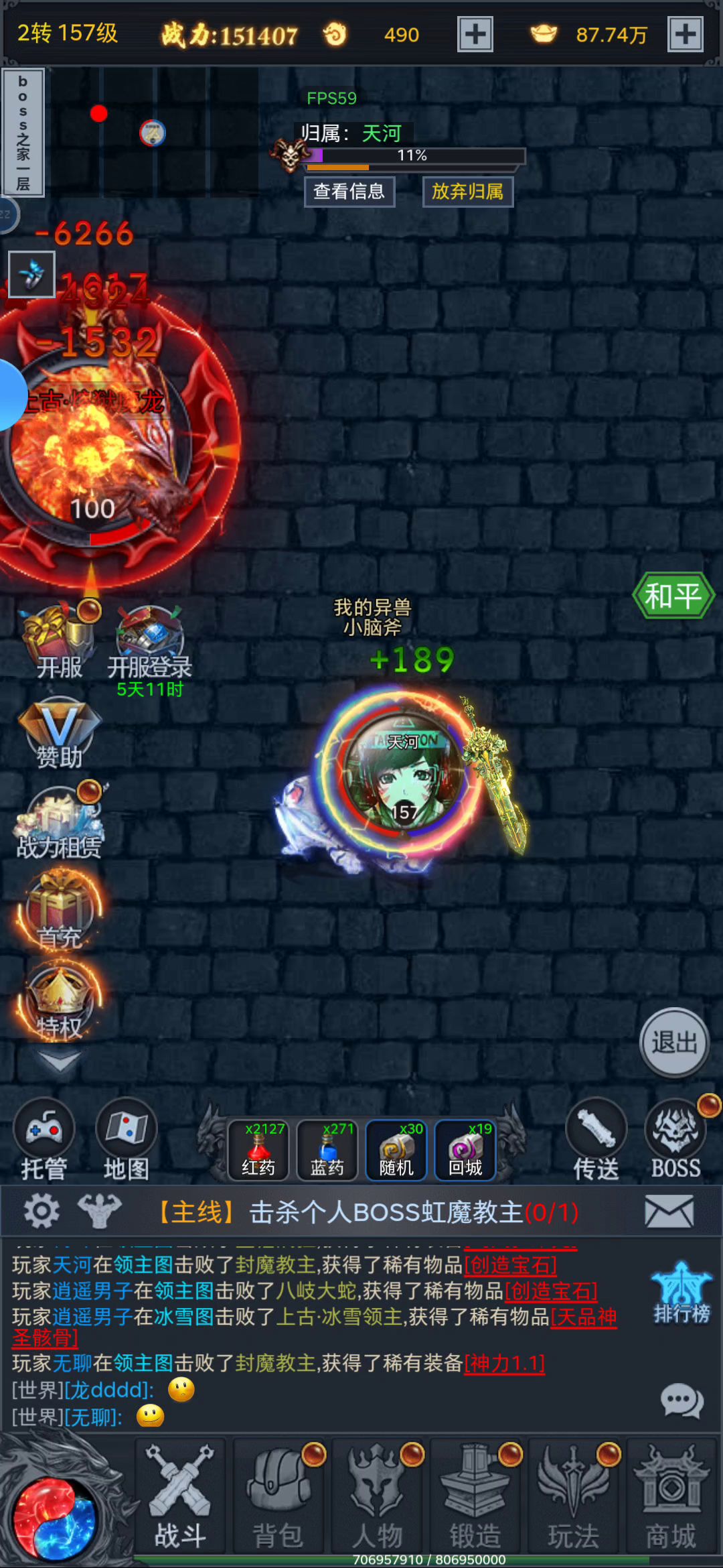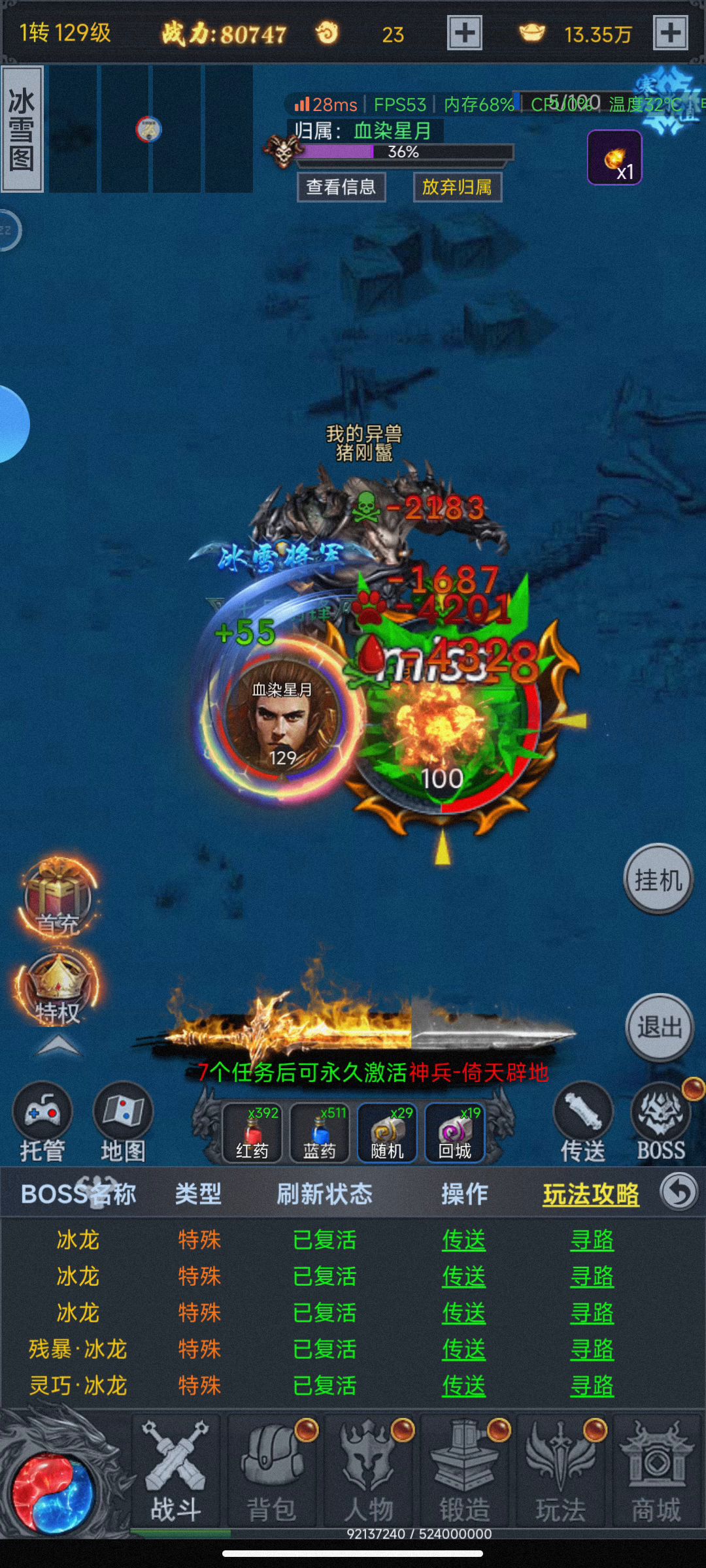 第一天击杀130级boss