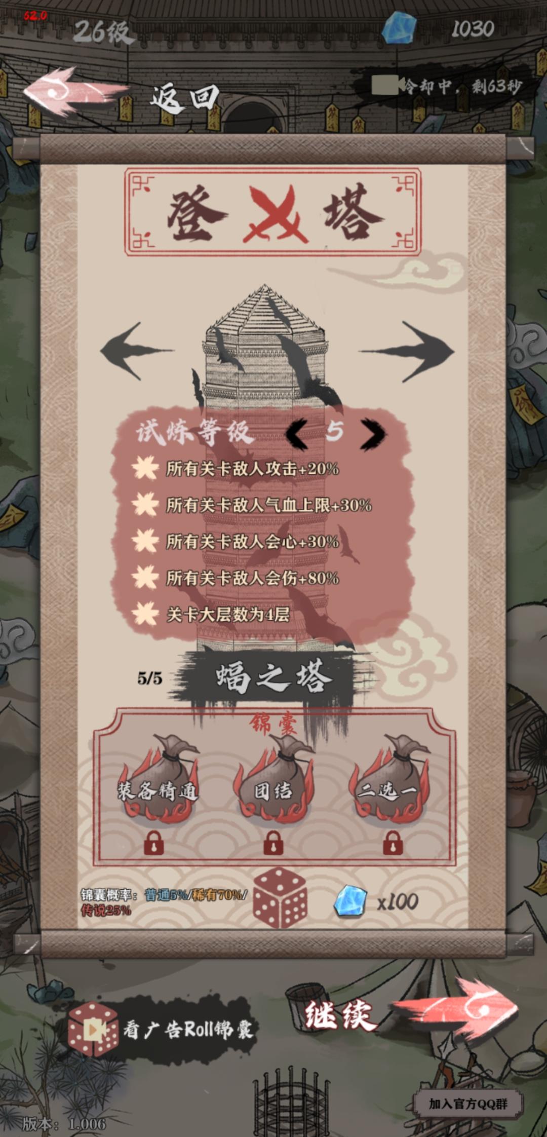 开局锦囊财神+财气生血,每层看一次广告拿元宝,角色吴苇戒尘必选,其余随意。给一星吴苇开一到两个装备格子和遗物格子,然后再合成,格子会完美叠加,这样6级吴苇就有几十个格子了。