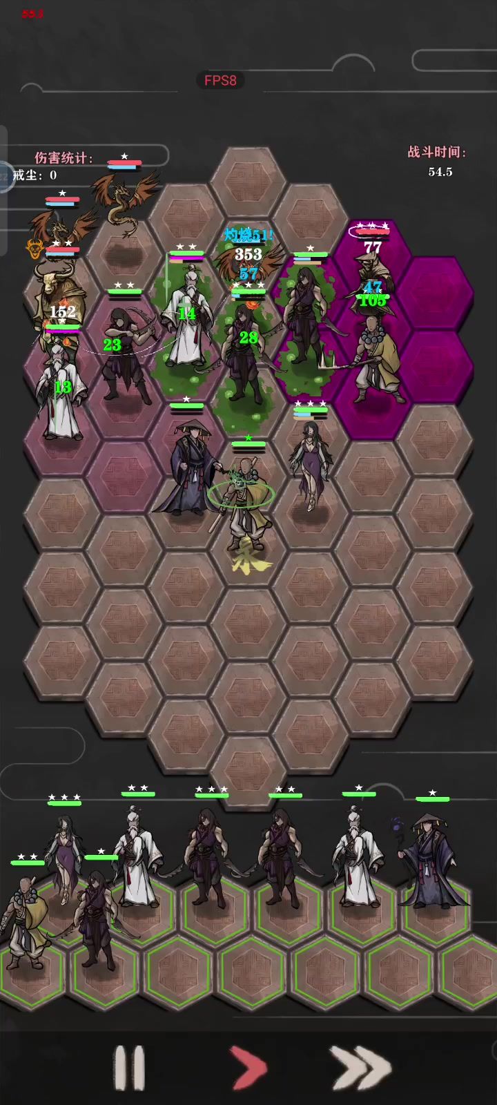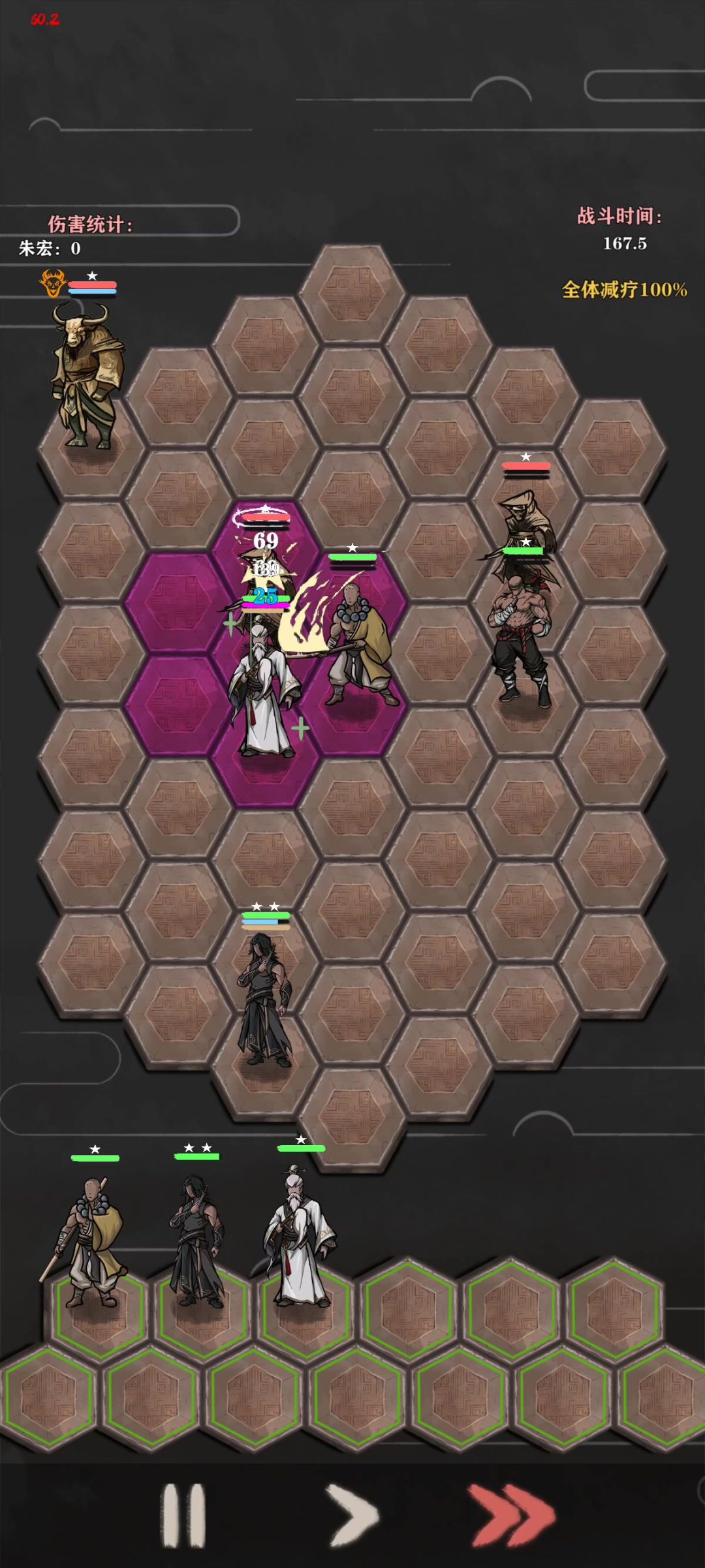 阵容如下: 输出唯一t0:姬命,输出高出一截,dps首选,通关攻击力155+384,格挡98%。锦囊拿的神盾、装备精通、血之复仇。 肉盾:凌龙,主要能带奶,站位注意不要被秒了 控场:和尚,4级控制范围很大,而且能大范围附加特效 奶妈:2个奶不解释,狐狸不能奶自己有点伤。多带攻速装