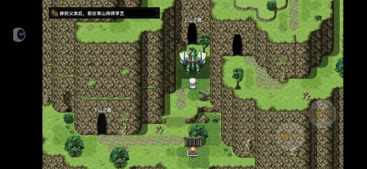 下山,山洞箱,山麓箱,山路七左上有箱,山岭最右有箱,左下箱,一路向下最右边还有箱,进山路六从左边走推石头箱怪《春秋左传》,往上走去山路五,最左边最右边都有箱,左上进山路四,左走闪光石块,左上边和中上边都有箱。(我懒,二刷骑龙上去的,没骑龙的兄弟倒看这一段就行)(下山图省事也可以桃园村最左用木板修桥直接出来到这里)。入下山路,山路不赘,一路向下,炸山石,遇黄巾,了世道,回真定,一路不语。我看到了