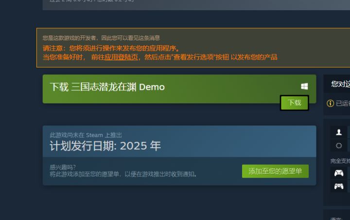 如题潜龙steam上demo已出(1-2章内容,到平定黄巾起义) pc玩家可以去试玩啦 顺便加下愿望单吧 地址 https://store.steampowered.com/app/3108790/_/