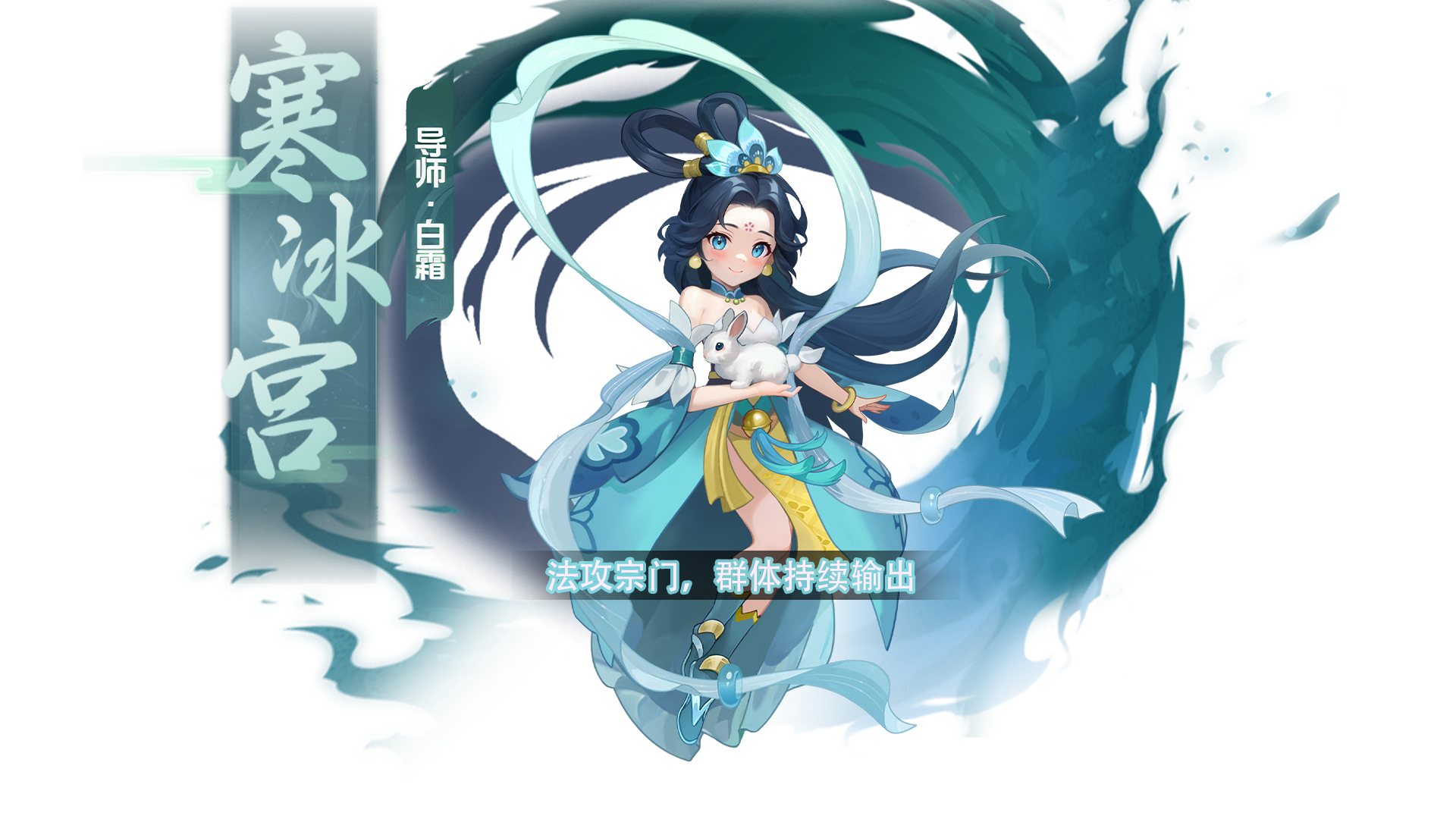寒冰宫导师:白霜门派寒冰宫是一个主为法术攻击的门派,讲究群体持续输出技能介绍:【寒冰突袭】主单攻初始技能消耗:100灵气初始技能效果:对单个目标进行1次冰系灵法伤害,无视对方一定灵法防御,并必定附加【寒气入体】状态,持续3回合;若目标有【寒气入体】状态则造成额外伤害寒气入体:速度降低5%,可叠加3层【千里冰封】主群攻初始技能消耗:200灵气初始技能效果:对多个目标各进行1次冰系