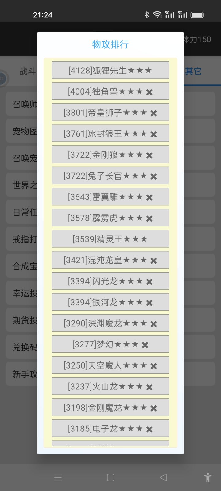 文字养成游戏,都是耗时间去肝,这个游戏不没有挂机,不过却也捷径可以走!首先,由于是单机类无账号宠物游戏,我们通常可以刷一个好的开局(兑换码:我的精灵2),如果不满意直接移除游戏,去taptap最近玩儿的游戏里面再次进去就是新账号了。100个宠物兑换石,直接D物攻类宠物,有的人觉得独角兽和金刚狼开局最好,没有也不急,霹雳虎和狼王、狮王什么的也是可以用的,两主物攻三星随便带一个成长好点儿的肉,另外两
