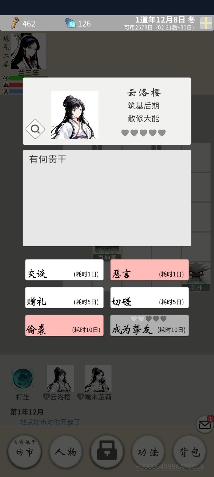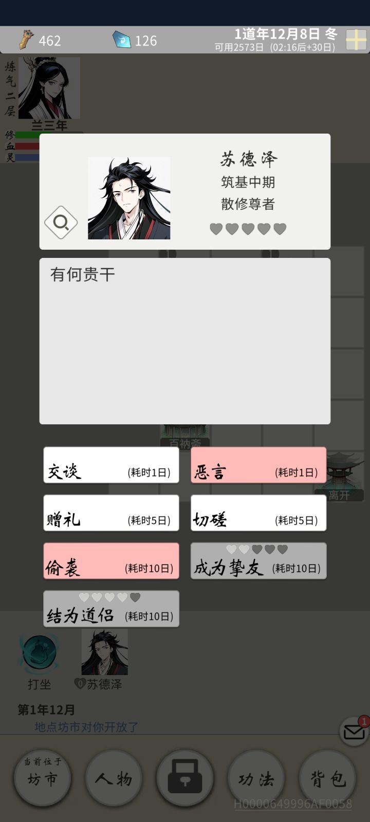 谈谈短期应改进的:异性npc可通过双修跟上主角速度,同性很容易在后期被放弃;赠礼消耗的精力太多,或者好感达到一定程度,赠礼可以一次性赠送多个;坊市卖出只能一次性卖全部;功法法宝自动排序分类等。