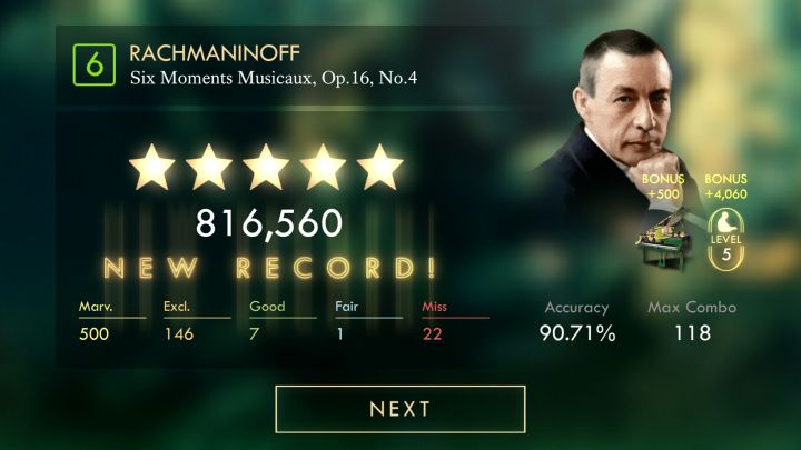 在这首上奋战了三四天终于过了。然后开战technical,对手残来说真的好难。。。准备等technical卡住的时候回到normal来继续进步。不过略麻烦的就是单首曲子的分数,排名和是否allcombo要在collection里看。。。到时候估计就是按照作曲家来刷吗。。。