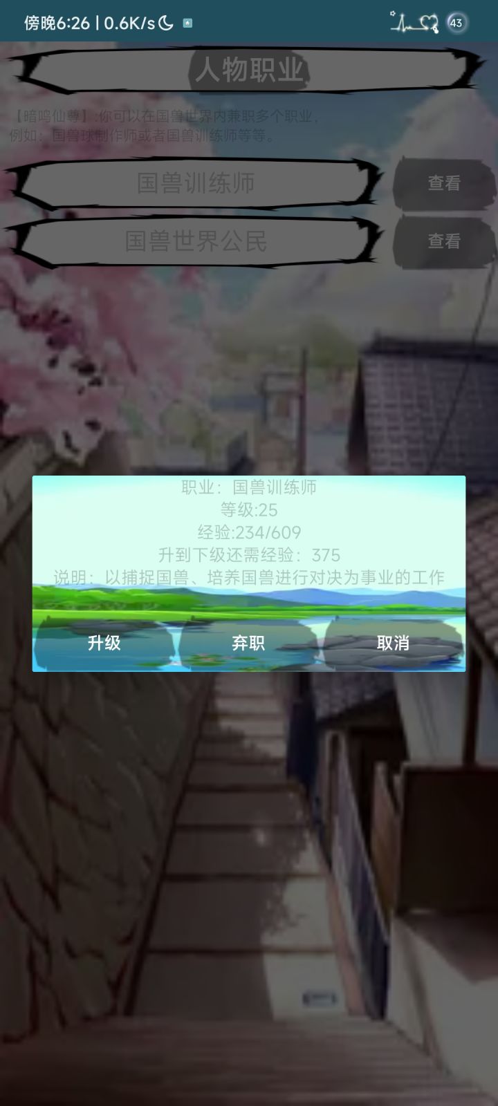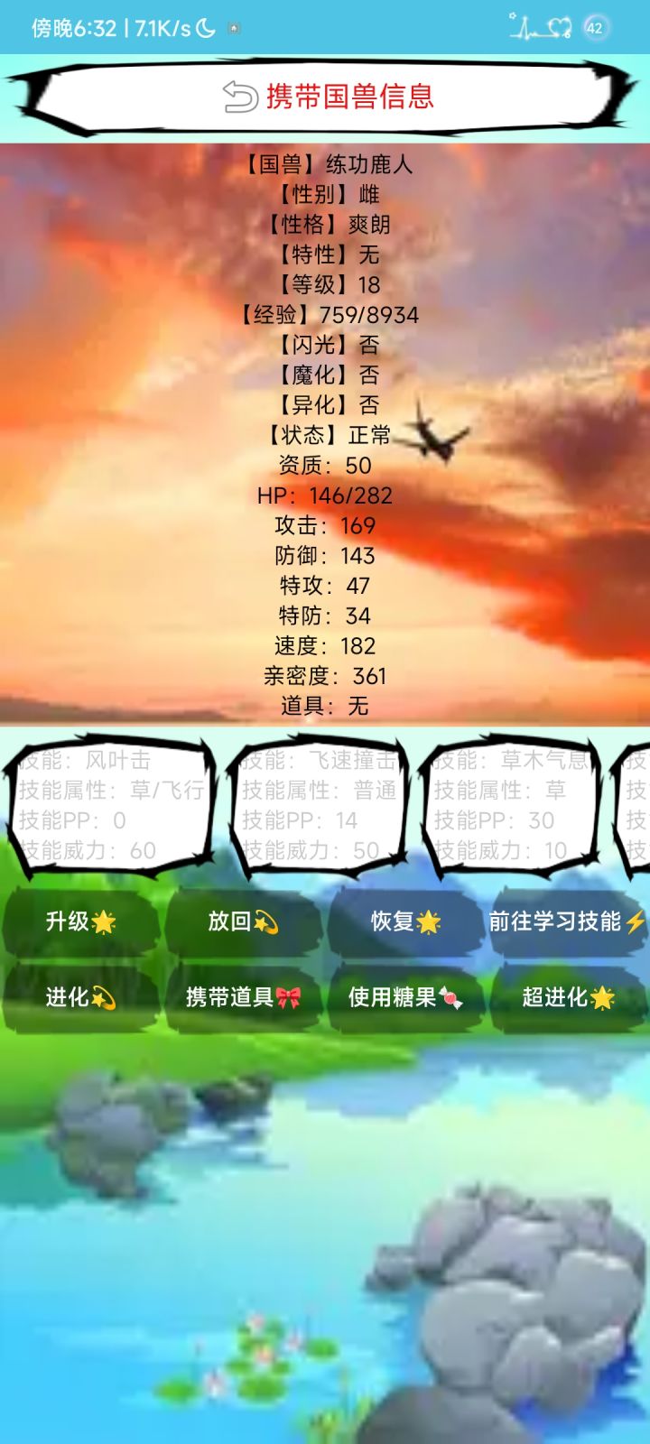 玩了这个游戏40分钟左右,目前25级,体验还可以,以下是我的一下小心得:1.国兽等级不得超过人物等级,但捕捉的可以超过,所以前期送的初始国兽抓到比他高级的我直接塞仓库里了。2.人物经验通过打怪得,怪等级越高经验越多,所以先抓高等级的用着先,把人物等级提起来,再养喜欢的。(人物等级在人物职业里面升级)3.国兽先别急着进化,我的修行鹿升一级需要800经验,进化后升一级需要8000经验(当事人非常