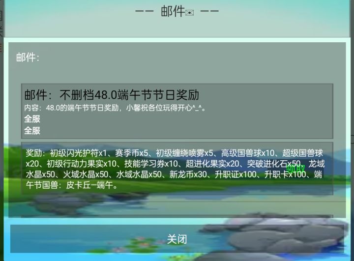 今天是端午节了,国兽传初篇开发者给各位国兽训练师送上了端午节礼包,各位请登陆游戏查看邮件领取。#游戏福利#游戏推荐#游戏资讯#宝藏厂商#福利活动