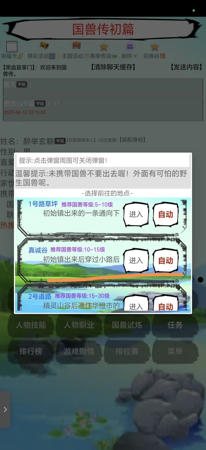 我们的原则就是白嫖,白嫖,白嫖……把白嫖贯彻到底。一、初始刚开始很迷茫,迷茫就对了,这是文字游戏,首先就是了解游戏刚开始必做的事情:1,邮件所有奖励领取,白嫖2,背包的初始国兽蛋开启,选择对应属性的国兽,三只相差不大。白嫖3,给初始国兽吃超级糖果,吃一百个够用了。二,起点做完这些上面这些事情后,我们的核心就要调整了,冲级,对冲级!所有功能都建立在等级上面。没有等级一切免谈。冲级我