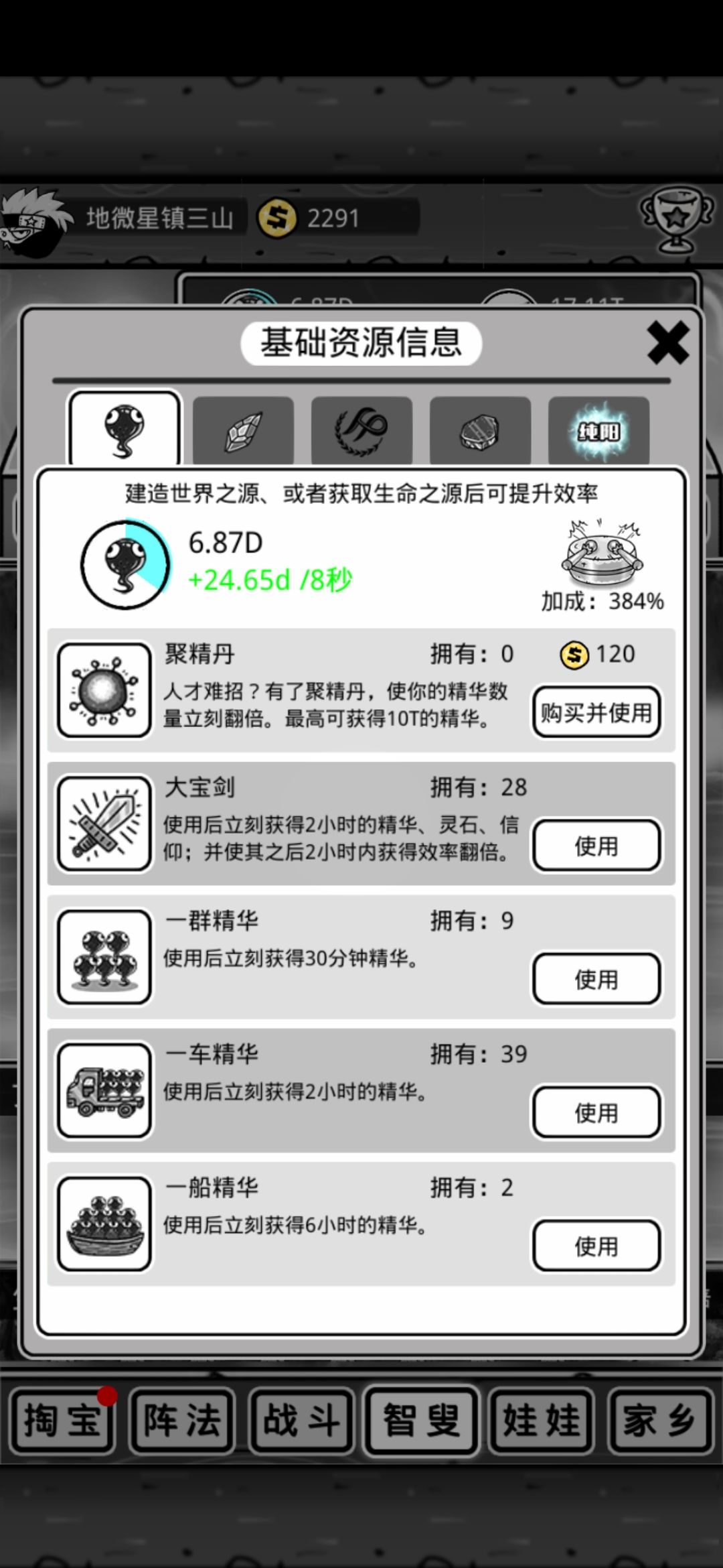 1.精华,这个只需要升级各种世界之源就行,如果觉得不够用,可以分屏提前升级你不能解锁的世界之源快速获得。 2.铁髓,这个需要在金丹期后在天书解锁丹火融合阵熔炉寒铁获取,如:在家乡商店购买极地寒铁。 3.纯阳真气,元婴之前只能靠时间和家乡获取 元婴后可以进入纯阳塔坐塔获取,如果你不是坐五层或四层至尊却经常有人打你,可以呼叫大佬帮你打回去。 交流群:563982115,新人速来,群里老东西会帮你打本