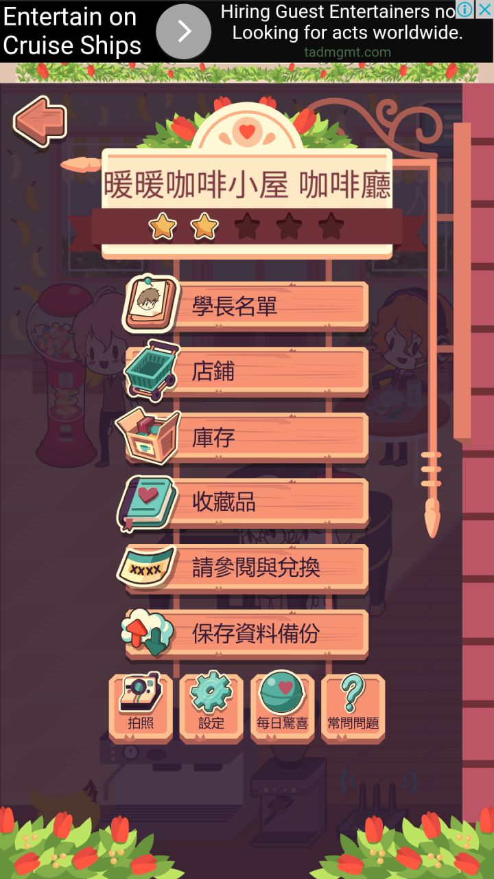 学长好萌啊!学长都是我的⁄(⁄⁄•⁄ω⁄•⁄⁄)⁄因为是放置类的,占内存也少,就慢慢玩了好久了,钱也有好多,所以每次看到咖啡店只有2星就好想升级啊,可是一直没有找到怎么升级~求老司机指教