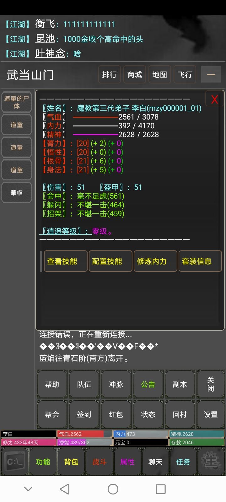 MUD游戏上手有难度,基本没有手动需要输入指令的地方了,开局游戏微肝,后期加入挂机模块。