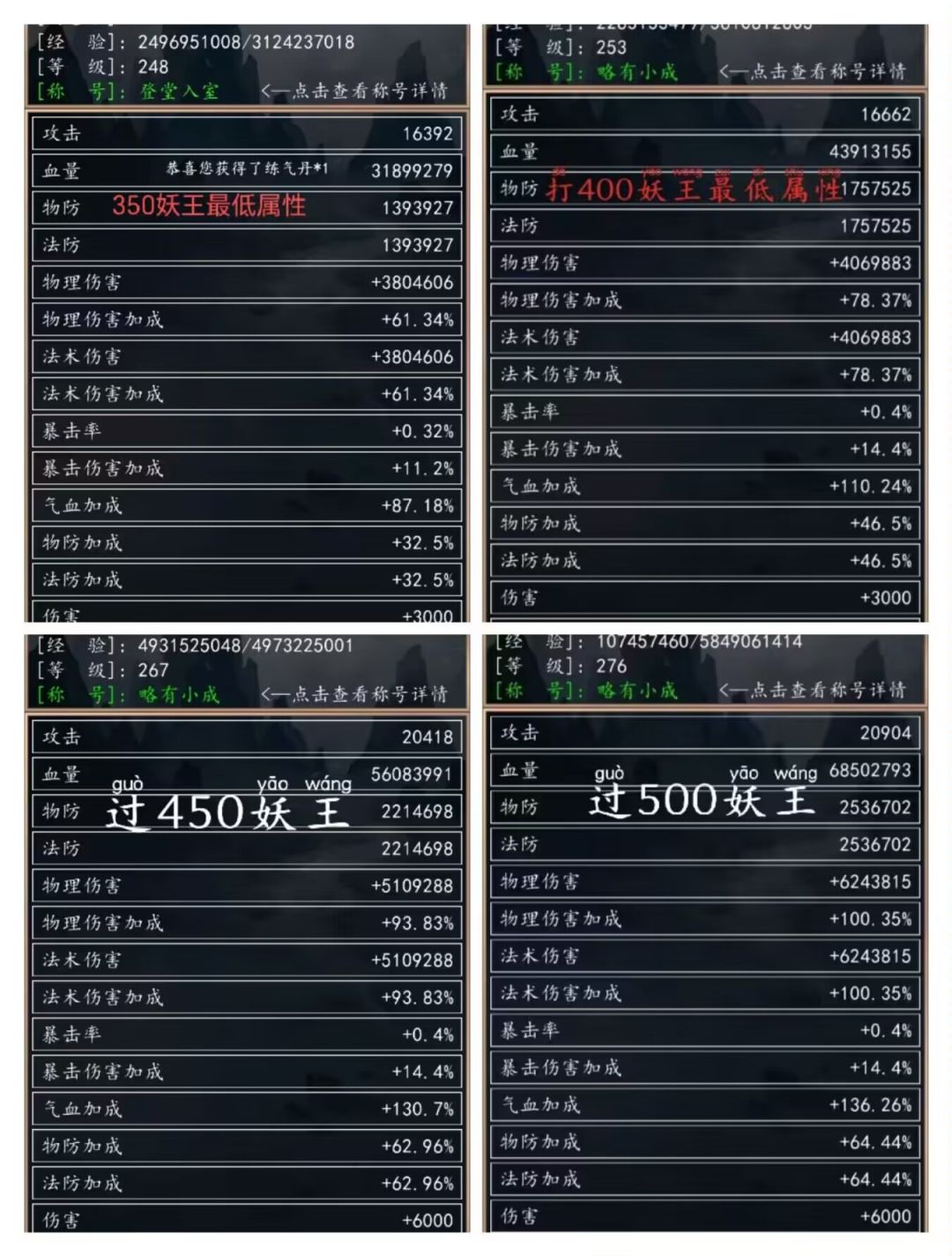各位,我已经攻克了800-900妖王,现在发800-900妖王的最低属性图,这边发出来给兄弟们参考一下#妖王