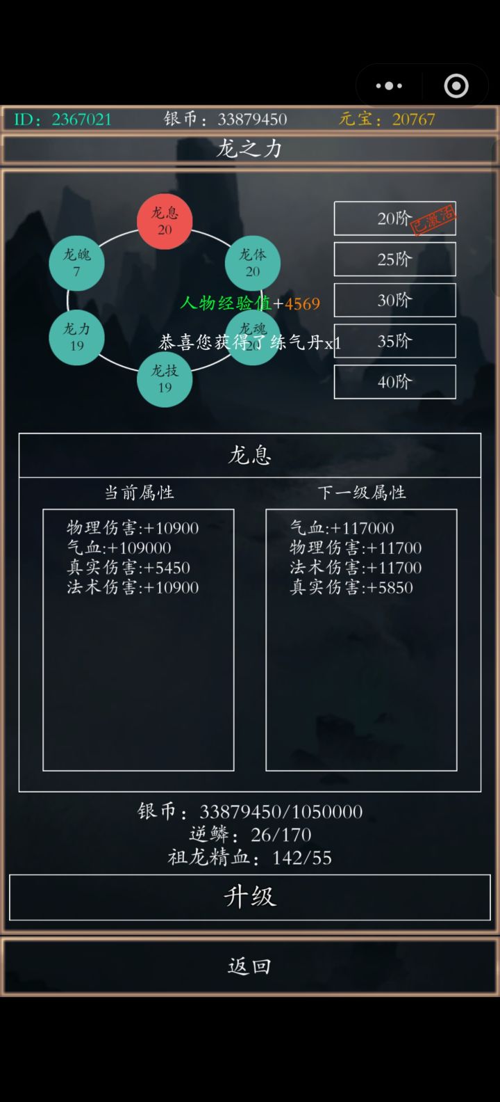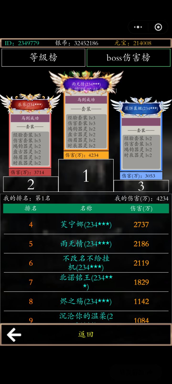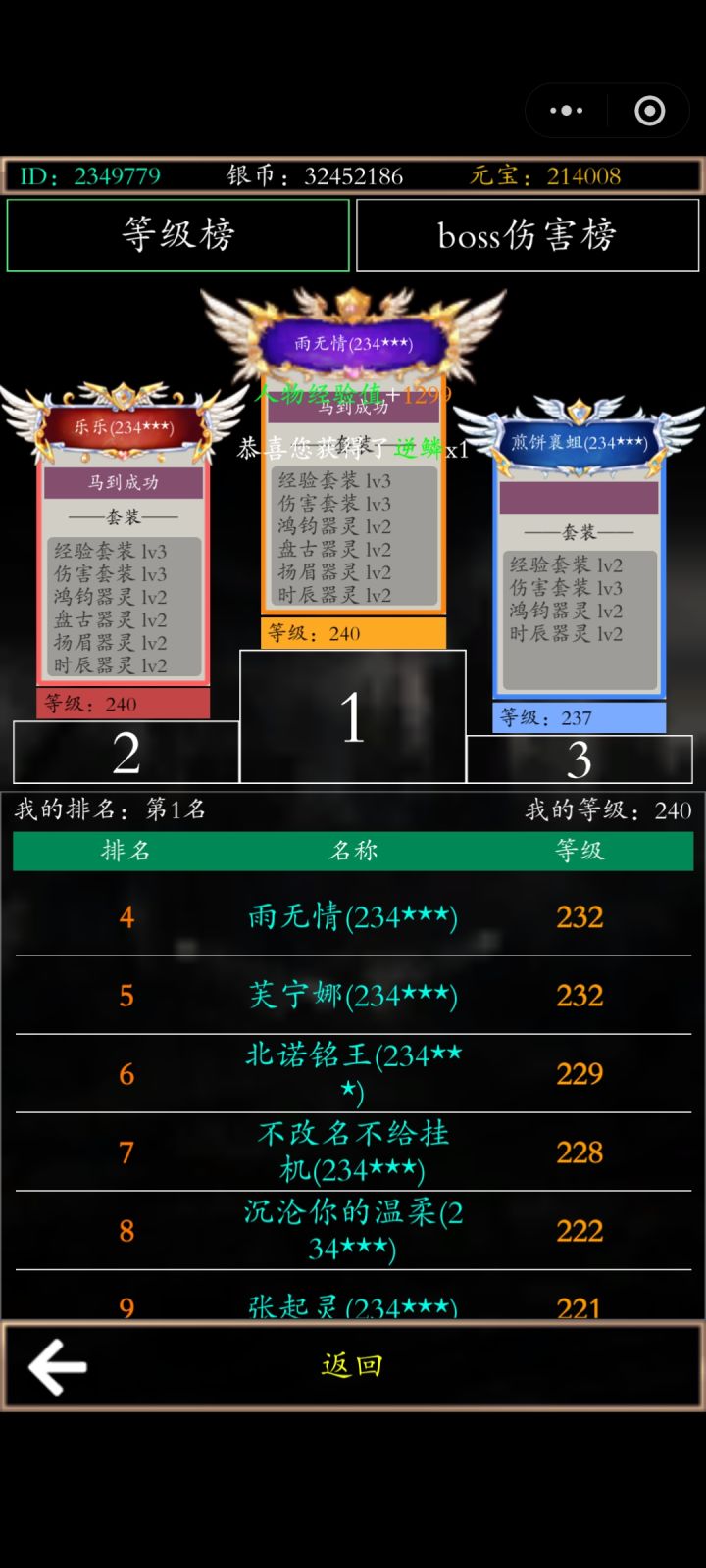 六点多榜一到233级(因为我一直在线看等级七点我突破到233级变等级一现在我打的250级妖王,他打的200级他不氪金话经验一应该是稳了