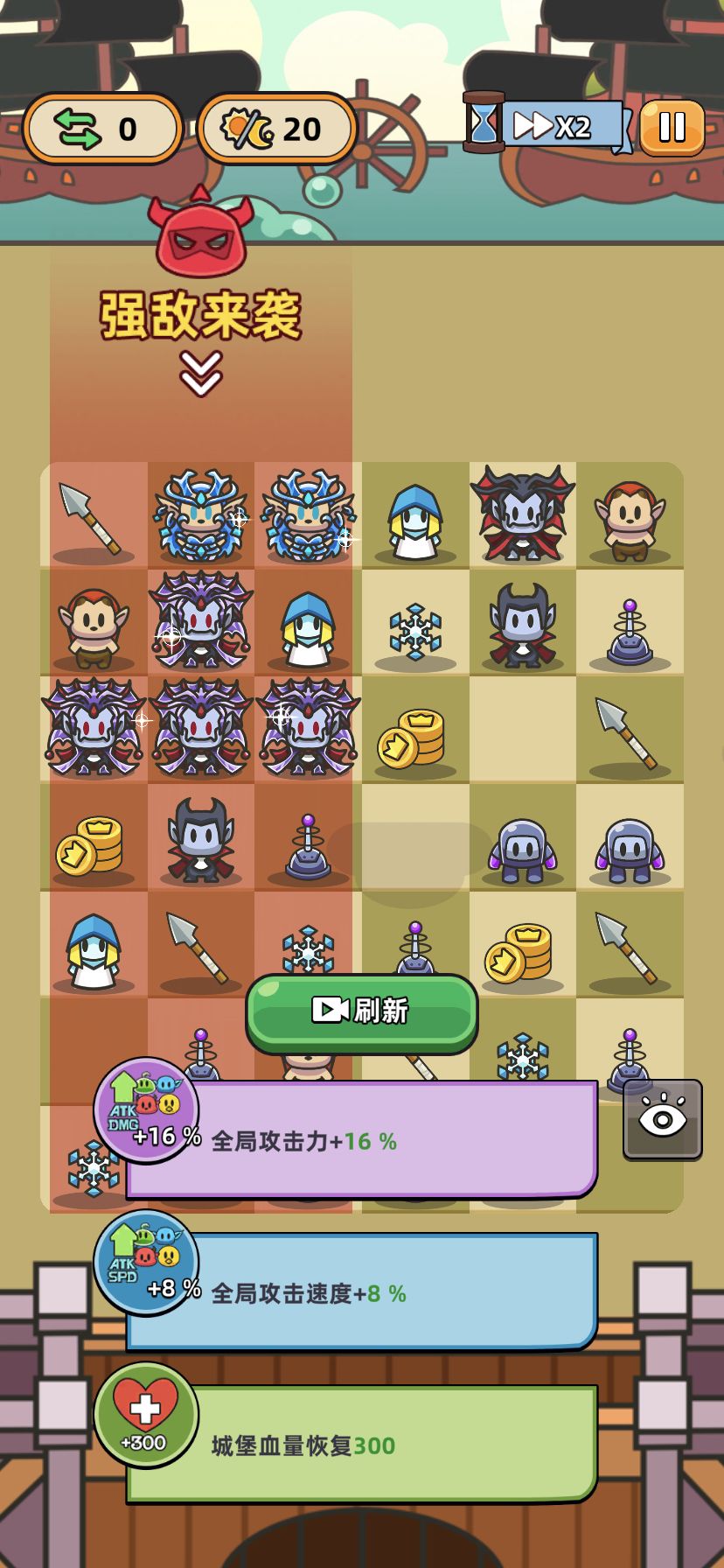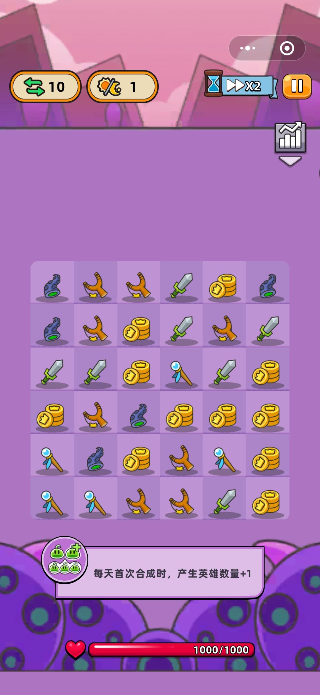 13图鏖战几天终于拿下!讲一下攻略思路 1、开局技能:开局技能非常重要!这把是每日首次合成数量+1,直接起飞! 2、合成金币的技能选择: ①金币先按三个合成:找合成五个时中间额外升一级的绿色技能 ②找到之后直接囤金币,五个五个合,找紫色技能可以斜向移动,这个最优先;其次是找跟主输出有关的技能,鸡就找弹弓进图直接变鸡的那个技能;最后是每天额外一步/每十天多留1-2个;至于加步数和加攻速攻击这种在基础