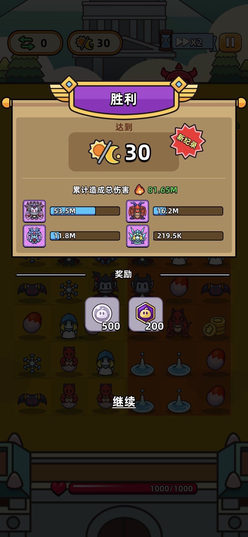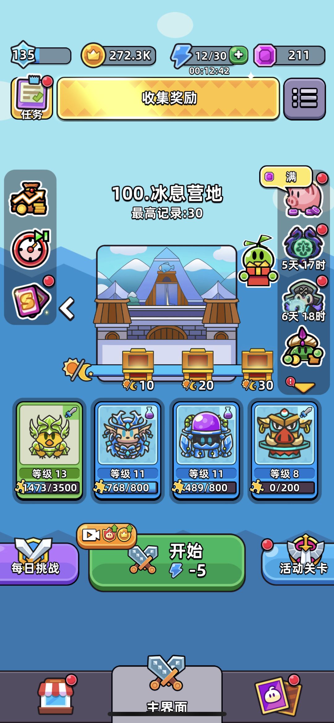 5月26日推图100毕业 图1现在阵容,其实最主要的是会刷技能就可以过关,上一下几个时间段的阵容仅供参考。 图2基本上就算出生的卡片了,当你有了 德古拉之后可以把小恶魔或者史莱姆换下(德古拉才是这个游戏的精髓)——白嫖首充党氪金建议先卡第九关升德古拉。备注:40关卡的地图收益最大化且不会因为抽奖抽到其它紫卡,后面的关卡都差不多,BOSS和小怪都一样。(卡技能硬上也行 但是资源太散,我就是吃了这个亏