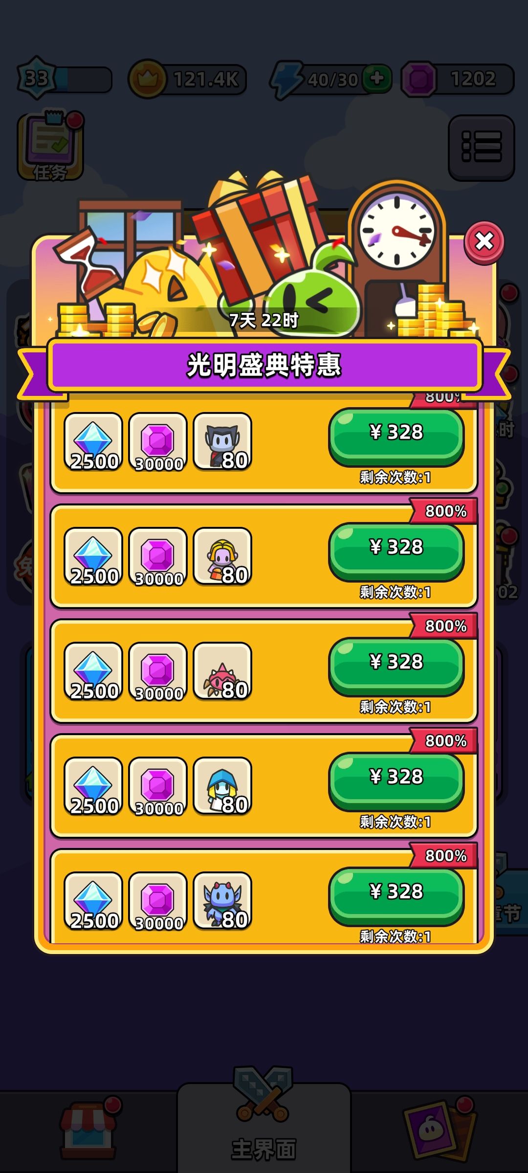 1001夜,也就是掉天赋石,需要9 12 15级才能开启,门槛很高,本想卡9关至老,没忍住,然后卡池多了雪花,再说光明祝福,里面不氪金的全搞完是2090点,可以换10个吸血鬼1500,剩下500随便换,也可以换黄金钥匙开1000箱子,但是有了雪花,看脸了,如果氪金,则是4080,不过氪金328还送你80吸血鬼碎片(太乱来了,吃相就这样了)有钱的随意了。