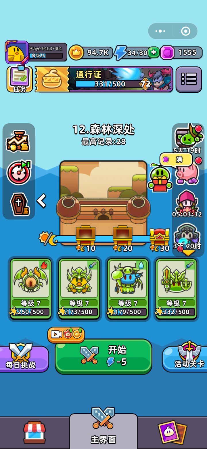 因为这个练度过关不难,加上是录屏,刷得比较随意。像开局和20天开始的很多地方没怎么看就直接合了,还有每天的技能也没有刻意去刷。这局运气很好,弥补了很多我操作上的失误,正常刷一局的时间是要比这个视频长的。教学已经有很多大佬发过了,我这里就发一个实战的参考视频,希望对大家有一点儿帮助,刷得确实不好,大佬们轻喷,有问题的话欢迎在底下交流讨论。