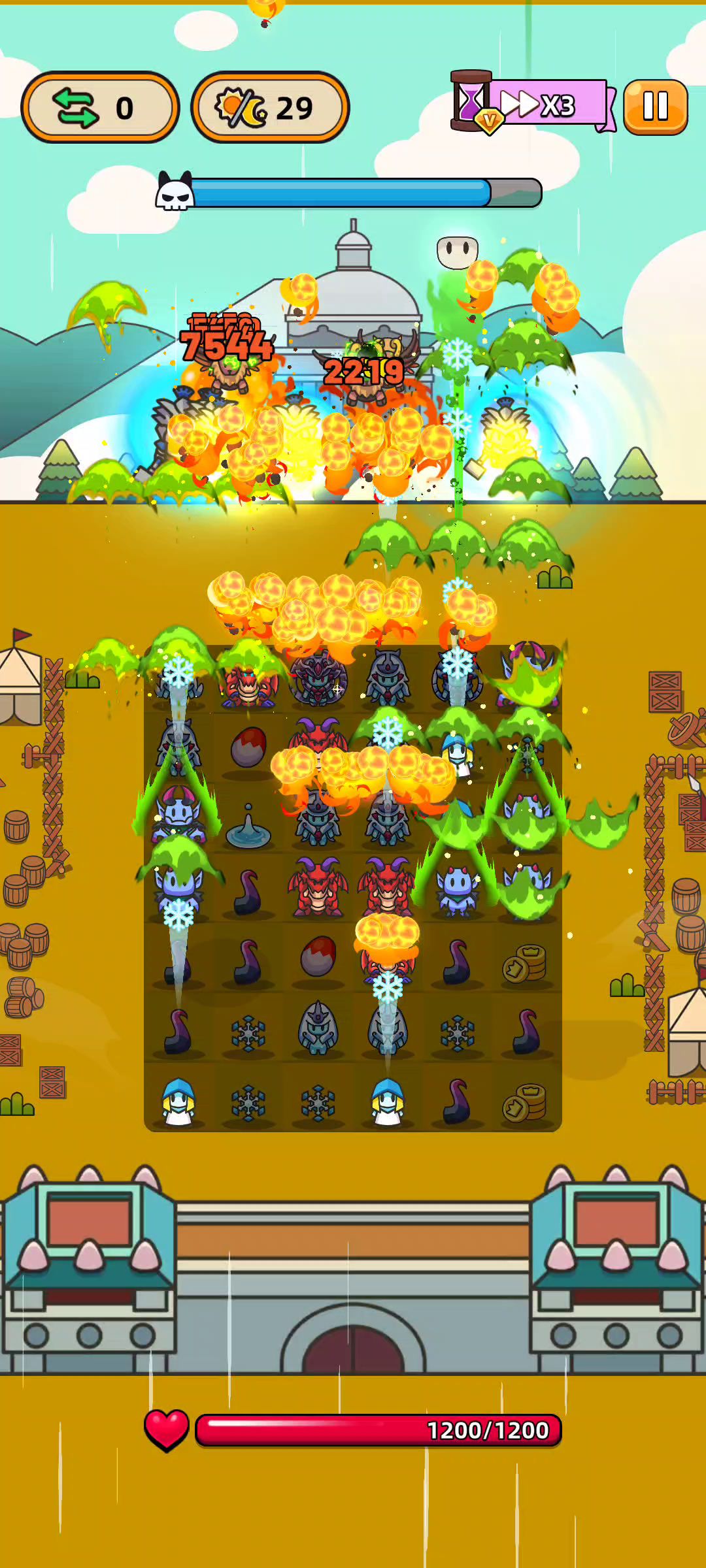 第一次这么爽,差2个就可以十字消除了。步数到后面都没啥用。要是想,可以5消出金币,在5金币合宝箱拿步数,疯狂套娃