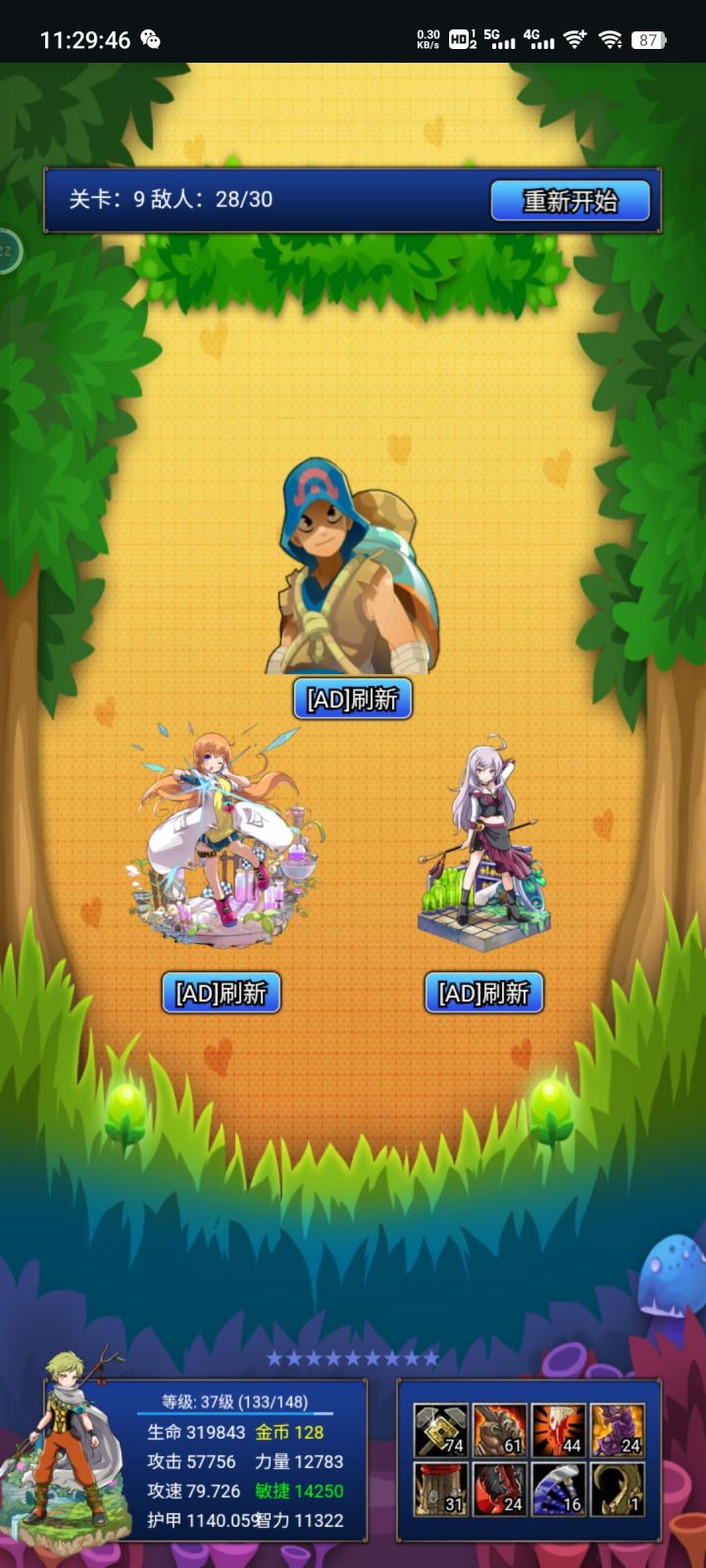关卡的话,一共是十个大关,每个大关有三十个小关,技能等级最高预估是50,我现在也只到了40级最高的。