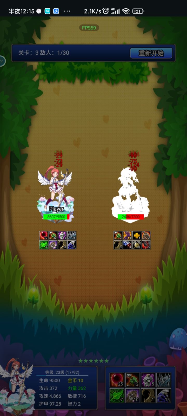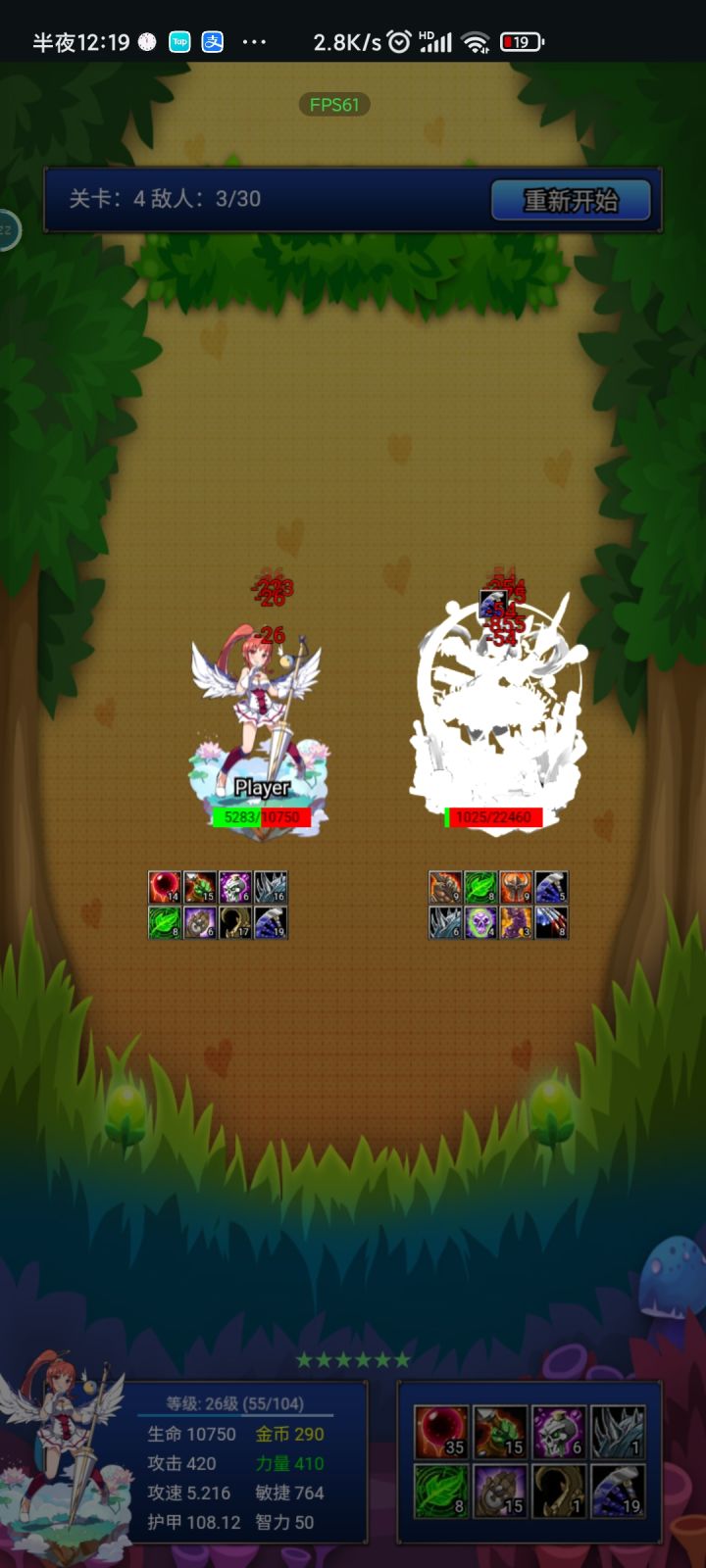 我建议新手重开游戏选择敏捷角色里面的攻击吸取对面属性这个角色,然后玩敏捷荆棘流,攻击速度这个手段,这游戏的效果展现不太理想,例如我攻速是3,打敌人身上除了速度快了,没什么太大的效果,但实际上他是效果重叠了,你速度只要不低于0,攻击时计算值为1,而攻速三的计算值为4。