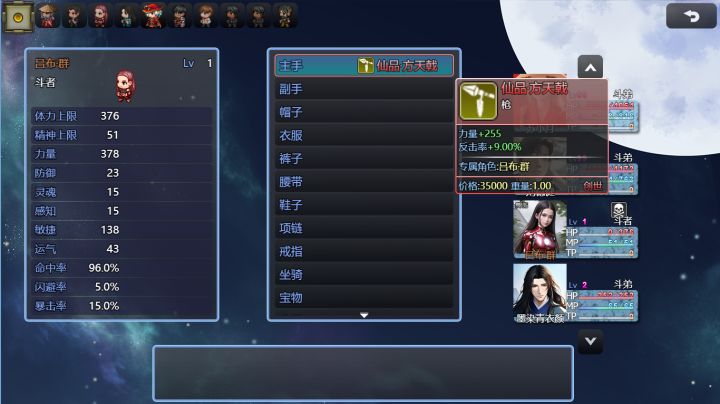 小月传联机版一周目剧情—— 作者:ch成成 修订:夏日冰爽么么茶第一章(可复制人物:张角(强力法师,战斗主要成员,有全员回血回蓝光环)张宝(废物)张梁(废物)邓茂,程志远,赵弘,韩忠,孙夏,波才,彭脱,卜己,张曼成)第一章武将熟练度要求:张梁10熟练度,张宝15熟练度,张角20熟练度,其它武将无熟练度要求。徐州城开局出生在刘备家,跟刘母对话,后面柜子拿玉女剑(不用sl)出门收刘稳建(