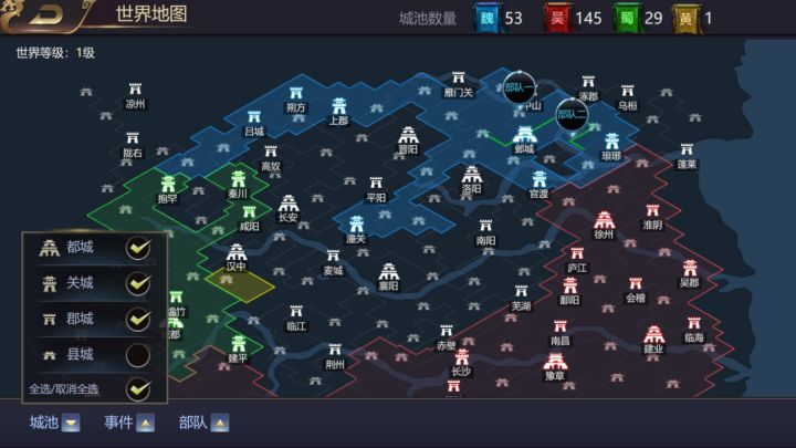 不看战报,不走回合,即时战斗的策略国战游戏!速来体验~下面我们接着介绍世界攻城略地:三、城池建筑:1、防御建筑:城墙 ,关城密道,烽燧,军营,瓮城,箭楼,石炮2、资源建筑:民户,驿站,寺庙,郿坞,汉阙,寺庙 ,匠坊,灌渠,市集,客栈,粮仓,关市,乐府,钱庄,畜栏四、攻城策略:1、从出生城出发,按县城、郡城、王城、关城顺序占领,迅速占领关内城池;2、 占领关内城池后,快速升级关城防御建