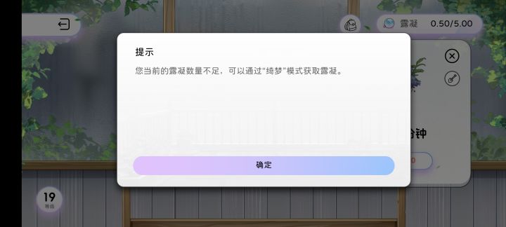 没有露凝的时候点击植物会先弹出露凝不足提示,正常情况下应该是浇水的时候才出这个提示吧