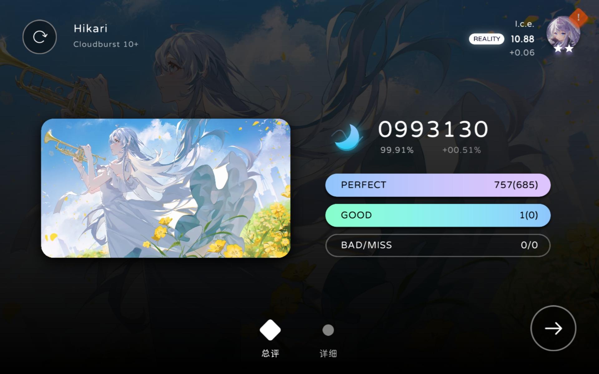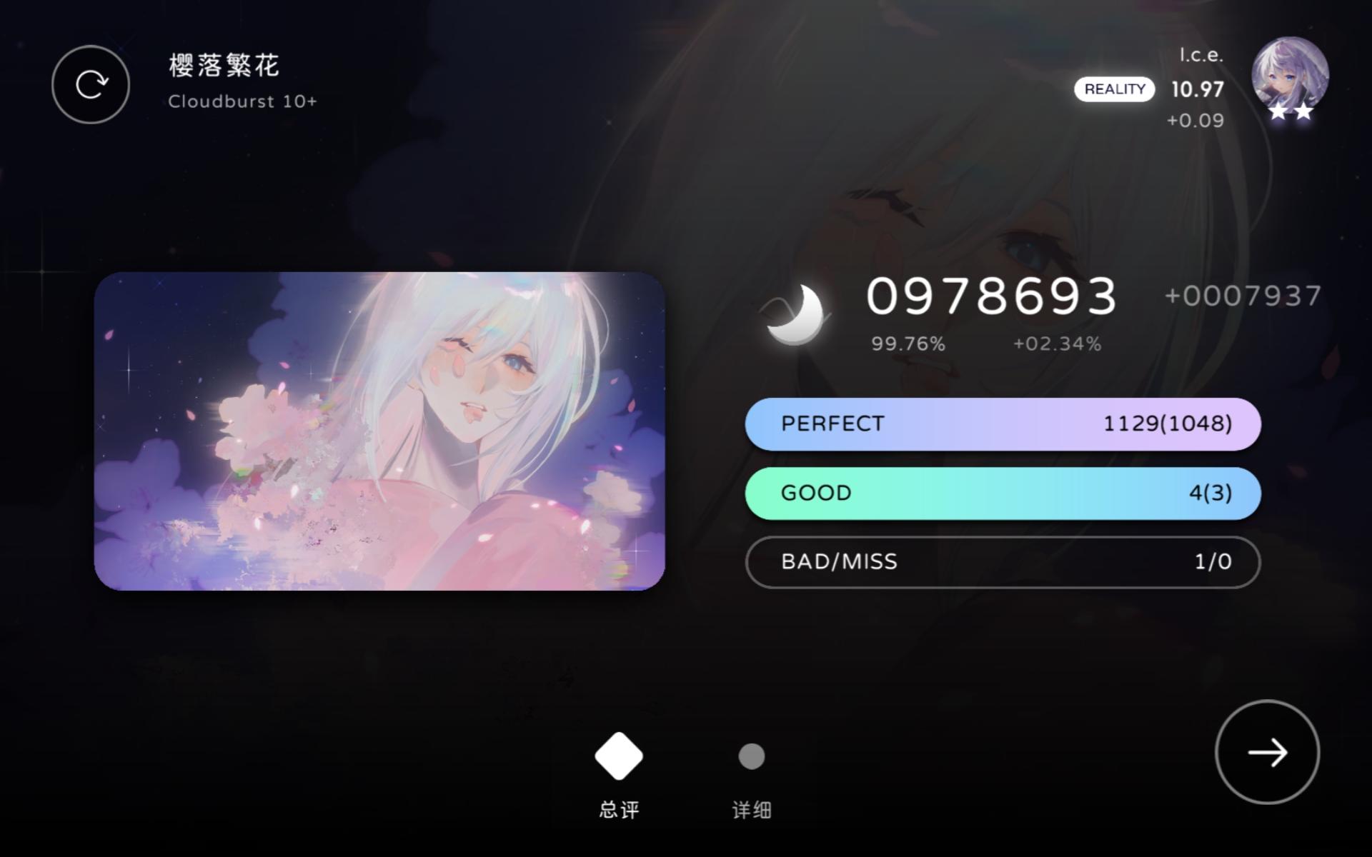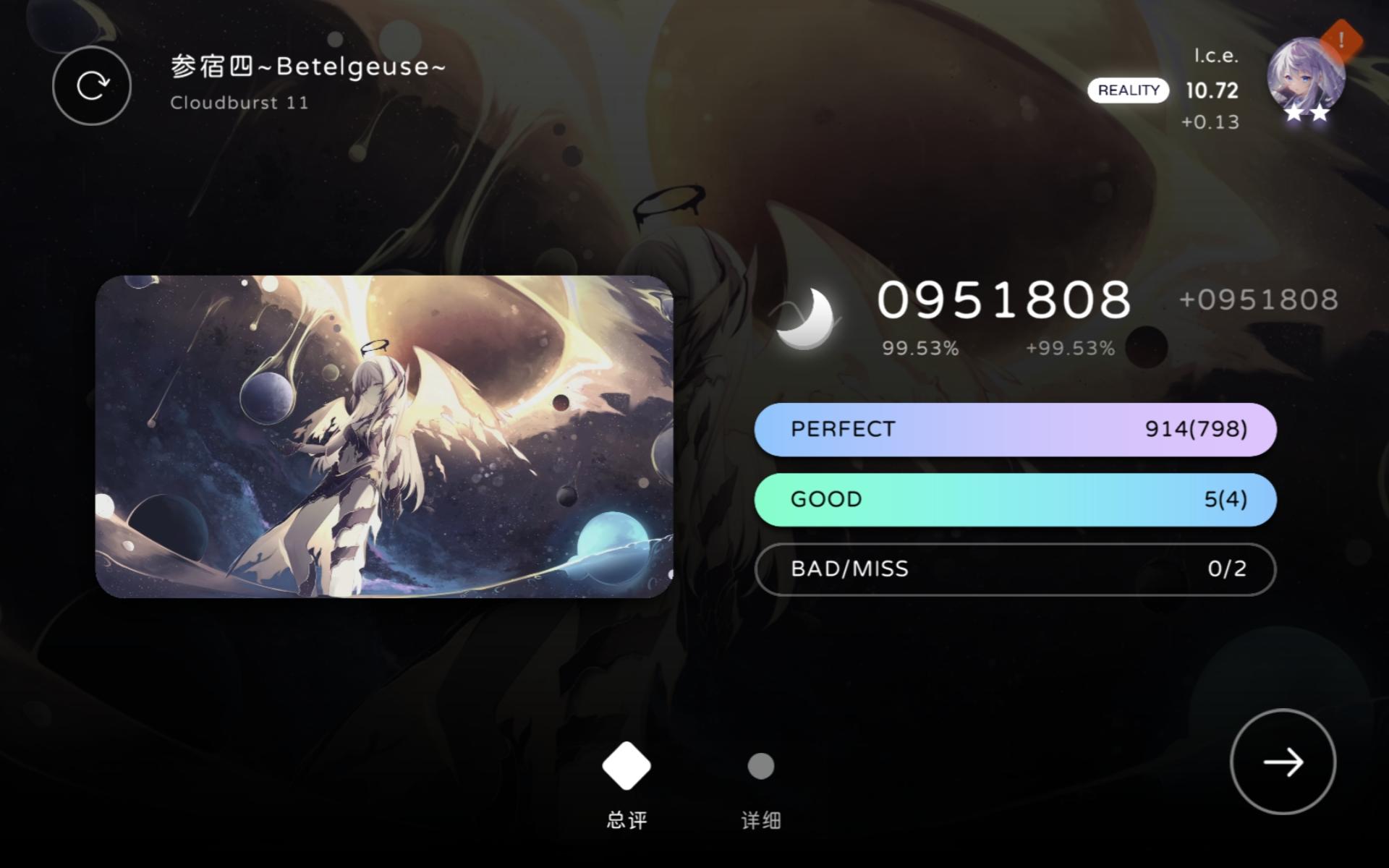 因为一直打不到紫reality,明明查分器上显示已经紫了,前20首也是新成绩,但还是白的,然后之前剩下的旧谱面也打不上去,所以决定从零开始,但还是留了个存档保底的,什么时候不想打了再下载存档回来,反正现在也到了瓶颈期。唯一恼火的是星要重打了,还要种不知道多久的地……唉,也许,只有当自己亲手毁灭自己所拥有的一切后,才能更放下自己骄傲的资本吧。希望早日重回11+
