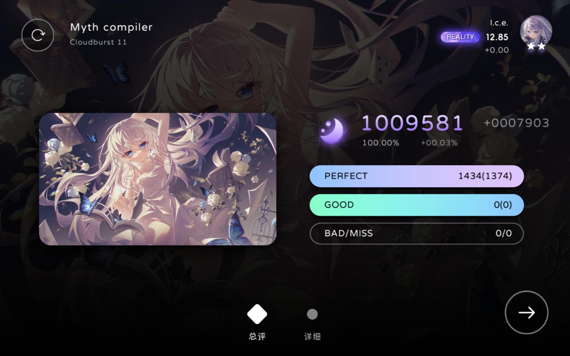 开头走神了,重开一次应该还算是初见吧,我觉得应该是...... 本来录屏是怕错过曲子结束后的异象的,第一章可惜就没记录下这个异象。不过异象没记录下来,倒记录了一个初见AP的屏元,算是意料之外的收获吧[表情_开心](感觉这曲子或许可以作为后日谈用?) 这游戏没用steam的云存档,结果中间重装电脑,忘记手动上传,原来的存档丢了,还好损失不大(本来成绩也不怎么样,听曲看故事去的) 最后,打得真舒服 可