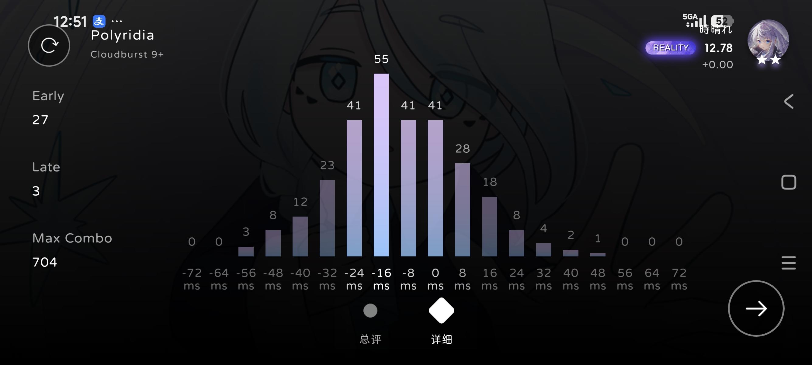因为一直打不到紫reality,明明查分器上显示已经紫了,前20首也是新成绩,但还是白的,然后之前剩下的旧谱面也打不上去,所以决定从零开始,但还是留了个存档保底的,什么时候不想打了再下载存档回来,反正现在也到了瓶颈期。唯一恼火的是星要重打了,还要种不知道多久的地……唉,也许,只有当自己亲手毁灭自己所拥有的一切后,才能更放下自己骄傲的资本吧。希望早日重回11+
