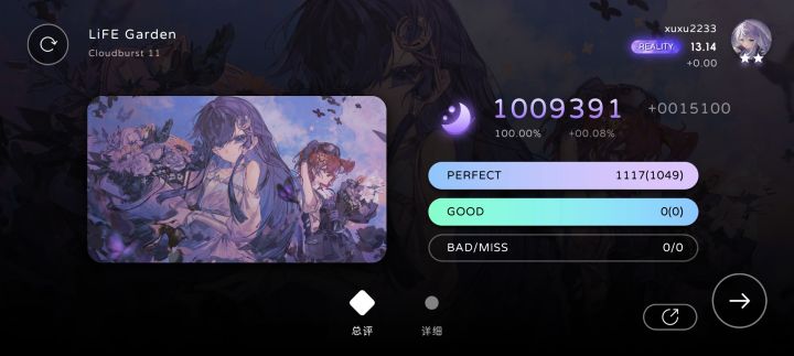个人11首杀! 悦耳的音乐 高质的谱面 是我沉浸其中🥰 这张谱从前天开始推到1g后性了不下十次 今天也是终于圆梦! 生命花园我喜欢你