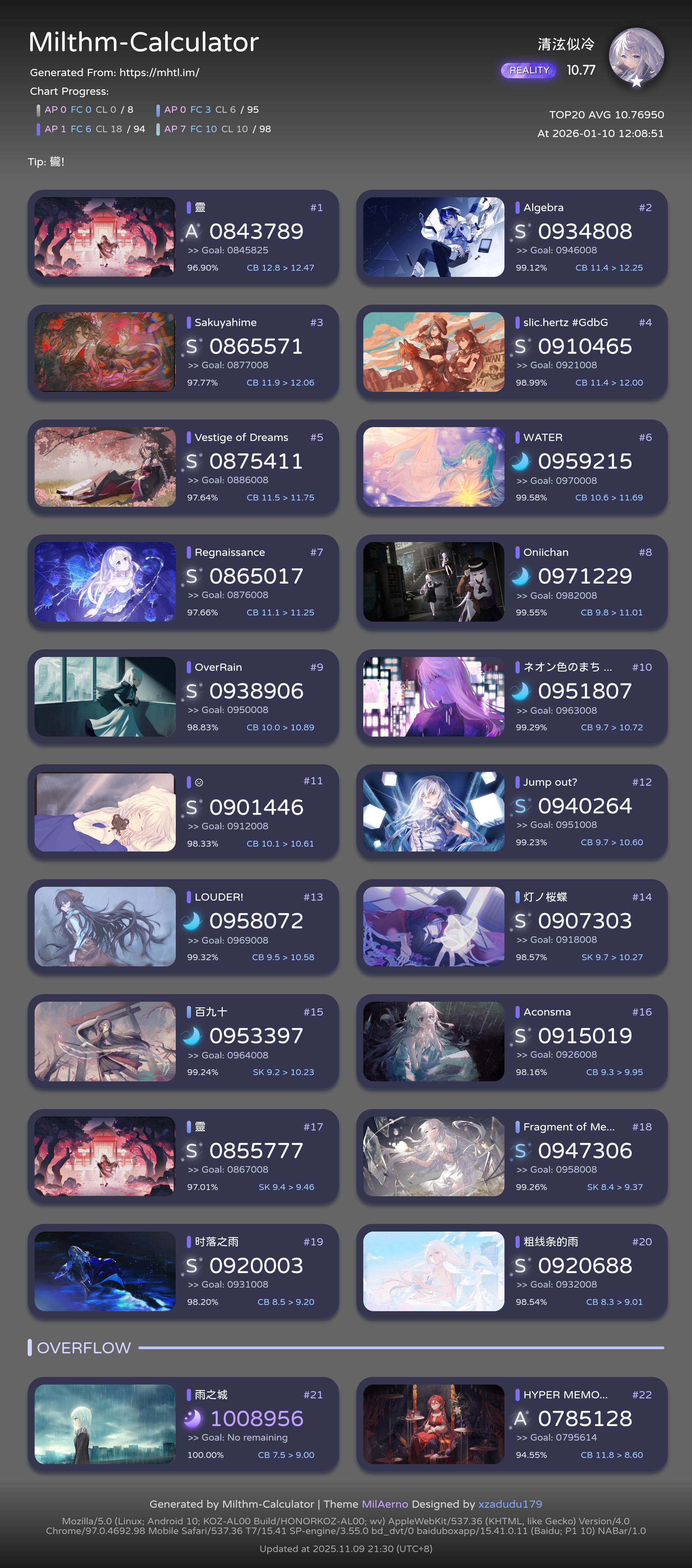 妈呀,寸了 6 次终于 ap 了😭😭😭有一次最后长条 good 没绷住后面连续四次稳定进尾杀然后 good 全是 early😭😭😭控一下交互速度就 ap 了(?)总体还是很水的,底力爽铺,大概加起来推了 2h 吧