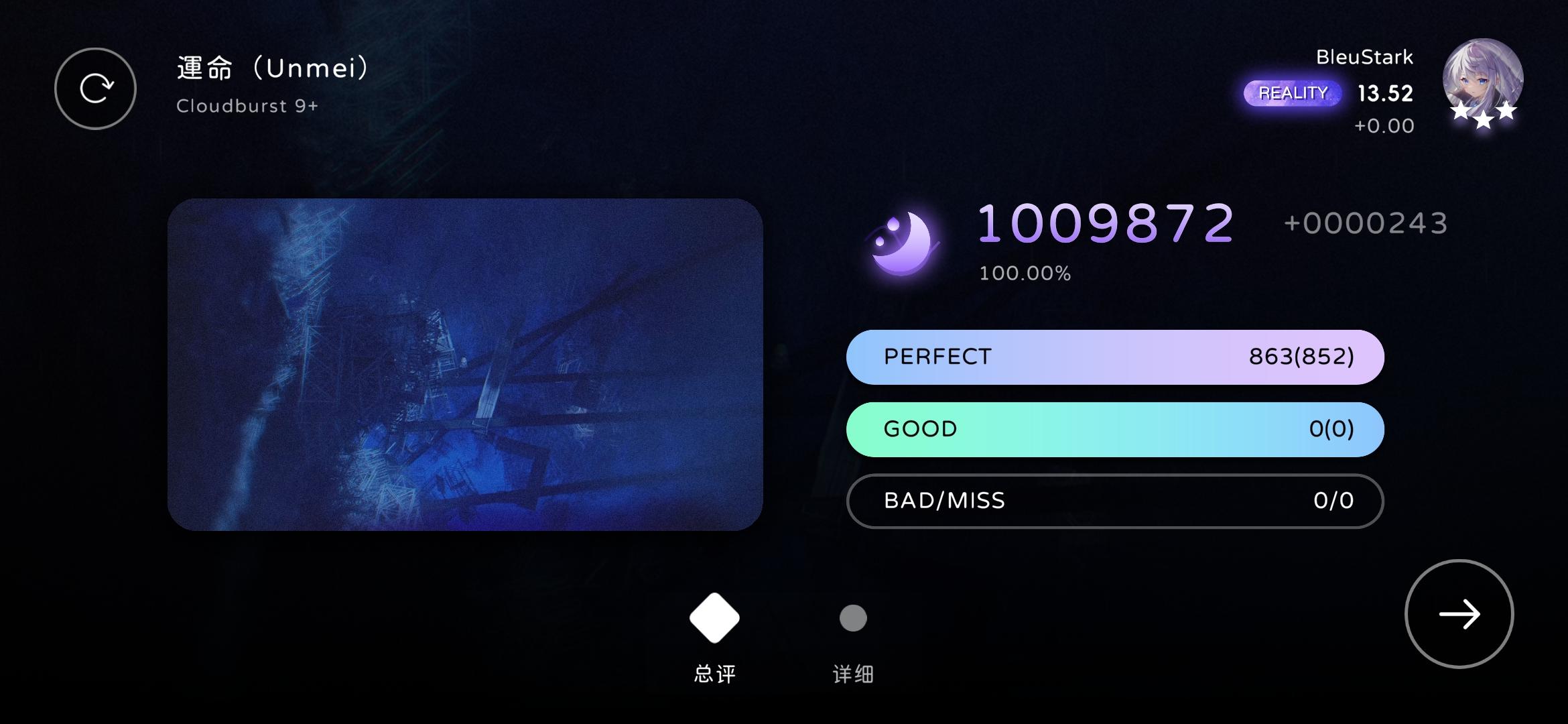 长条看了介绍也不是很懂()打了很久,就p了一首7+,准度也不是很看的懂判定,不知道是延迟没调好还是越级导致的,总之一把下来小p几乎全是late()顺便问问沉浸度是怎么加的,好像加到40%多后打歌不加了?(可能是错觉)还有就是有没有什么歌和谱子推荐()
