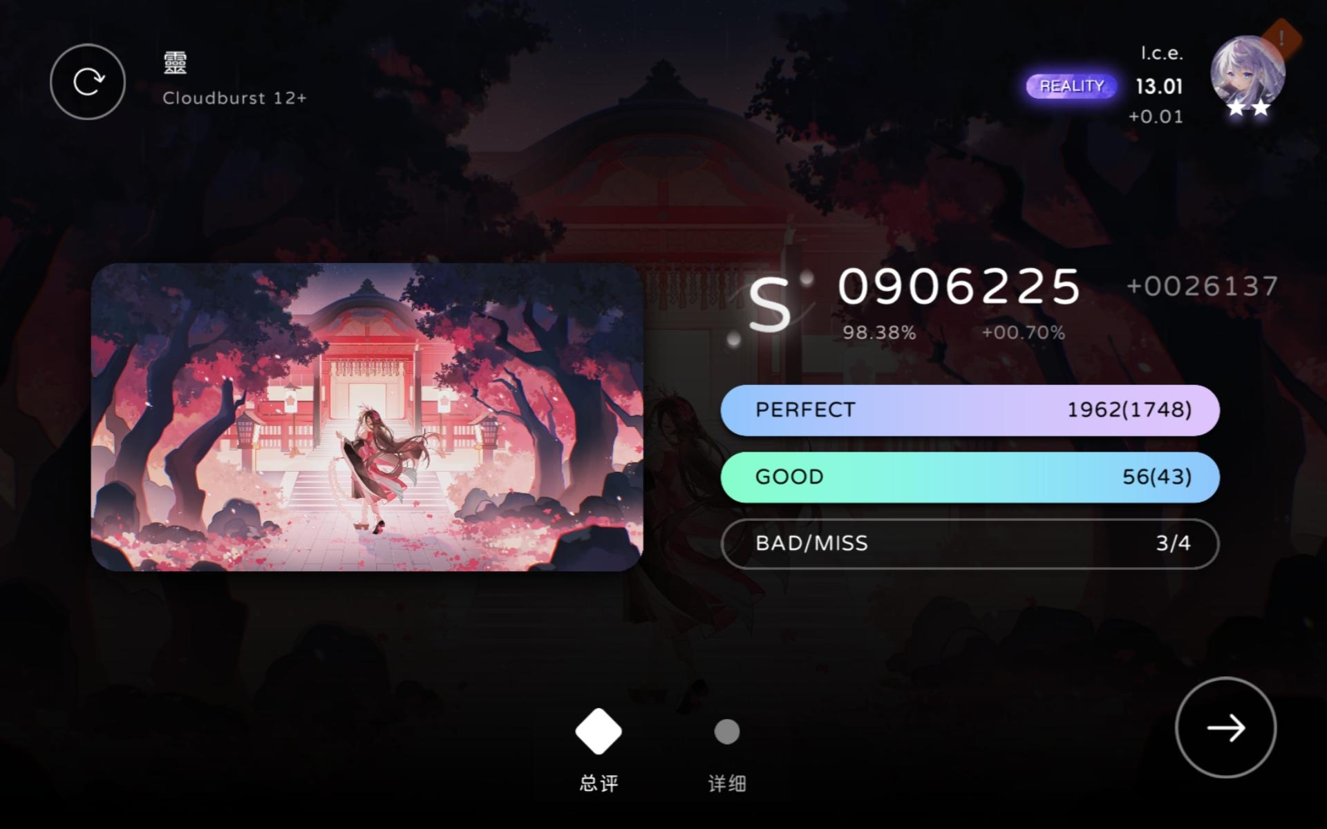 开头走神了,重开一次应该还算是初见吧,我觉得应该是...... 本来录屏是怕错过曲子结束后的异象的,第一章可惜就没记录下这个异象。不过异象没记录下来,倒记录了一个初见AP的屏元,算是意料之外的收获吧[表情_开心](感觉这曲子或许可以作为后日谈用?) 这游戏没用steam的云存档,结果中间重装电脑,忘记手动上传,原来的存档丢了,还好损失不大(本来成绩也不怎么样,听曲看故事去的) 最后,打得真舒服 可