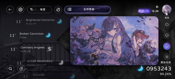 开头走神了,重开一次应该还算是初见吧,我觉得应该是...... 本来录屏是怕错过曲子结束后的异象的,第一章可惜就没记录下这个异象。不过异象没记录下来,倒记录了一个初见AP的屏元,算是意料之外的收获吧[表情_开心](感觉这曲子或许可以作为后日谈用?) 这游戏没用steam的云存档,结果中间重装电脑,忘记手动上传,原来的存档丢了,还好损失不大(本来成绩也不怎么样,听曲看故事去的) 最后,打得真舒服 可