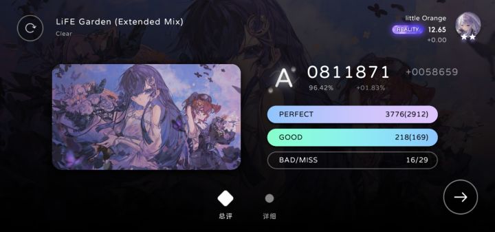个人11首杀! 悦耳的音乐 高质的谱面 是我沉浸其中🥰 这张谱从前天开始推到1g后性了不下十次 今天也是终于圆梦! 生命花园我喜欢你