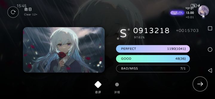 个人11首杀! 悦耳的音乐 高质的谱面 是我沉浸其中🥰 这张谱从前天开始推到1g后性了不下十次 今天也是终于圆梦! 生命花园我喜欢你