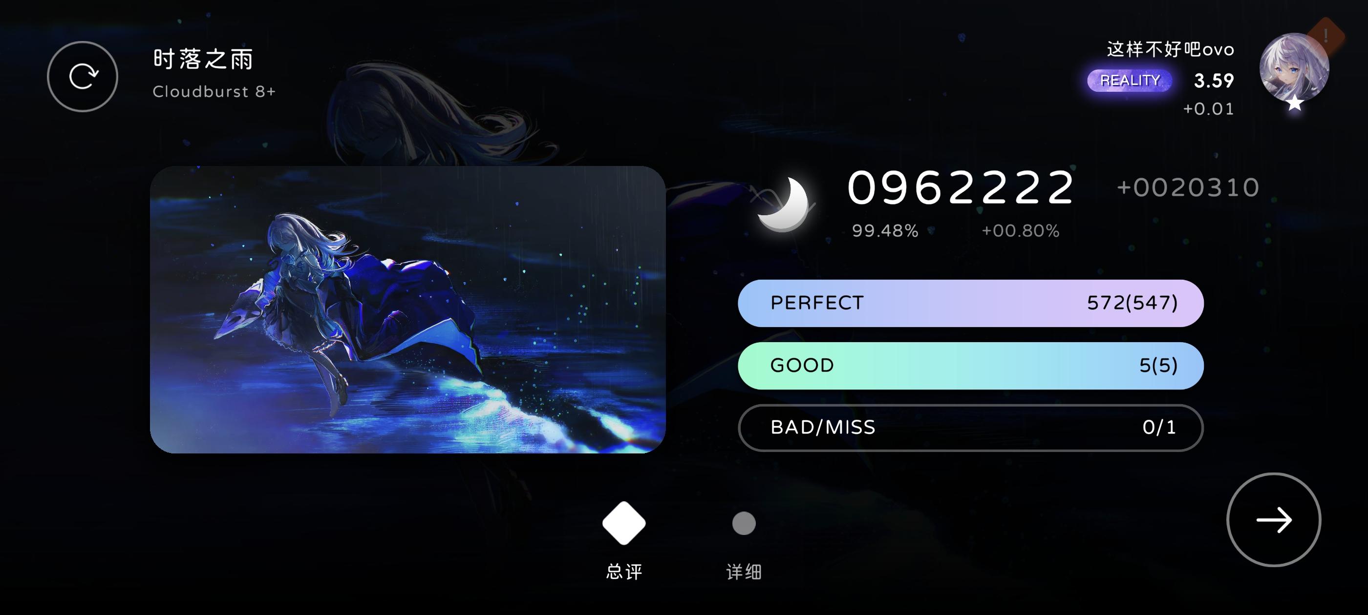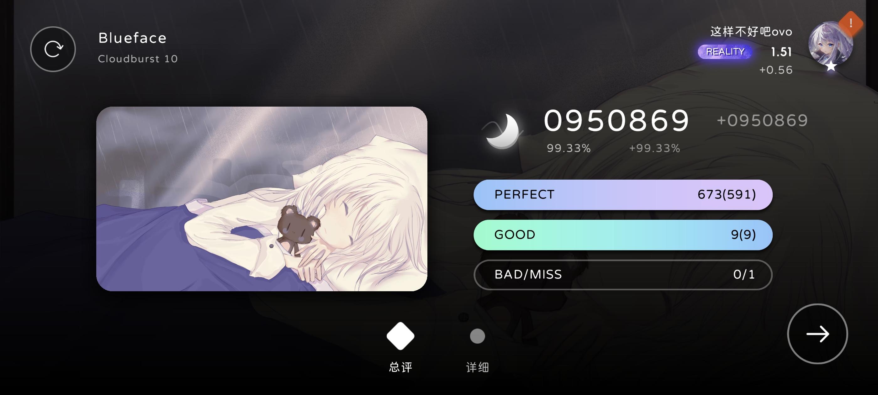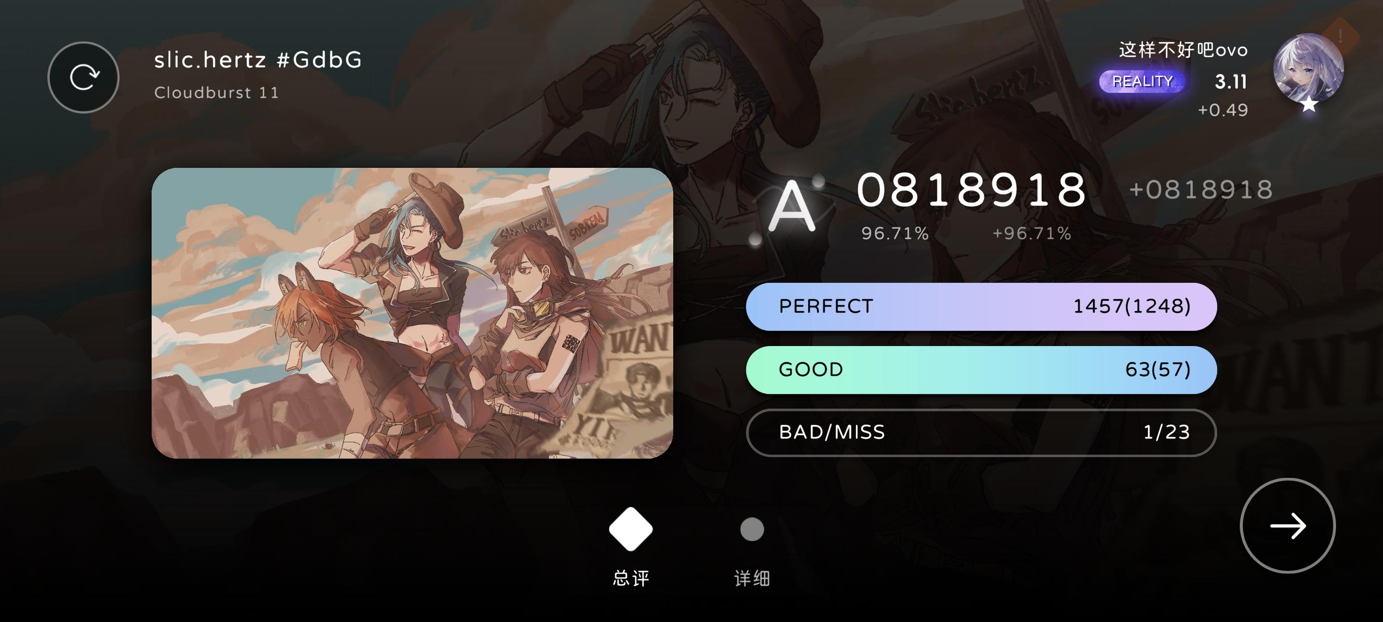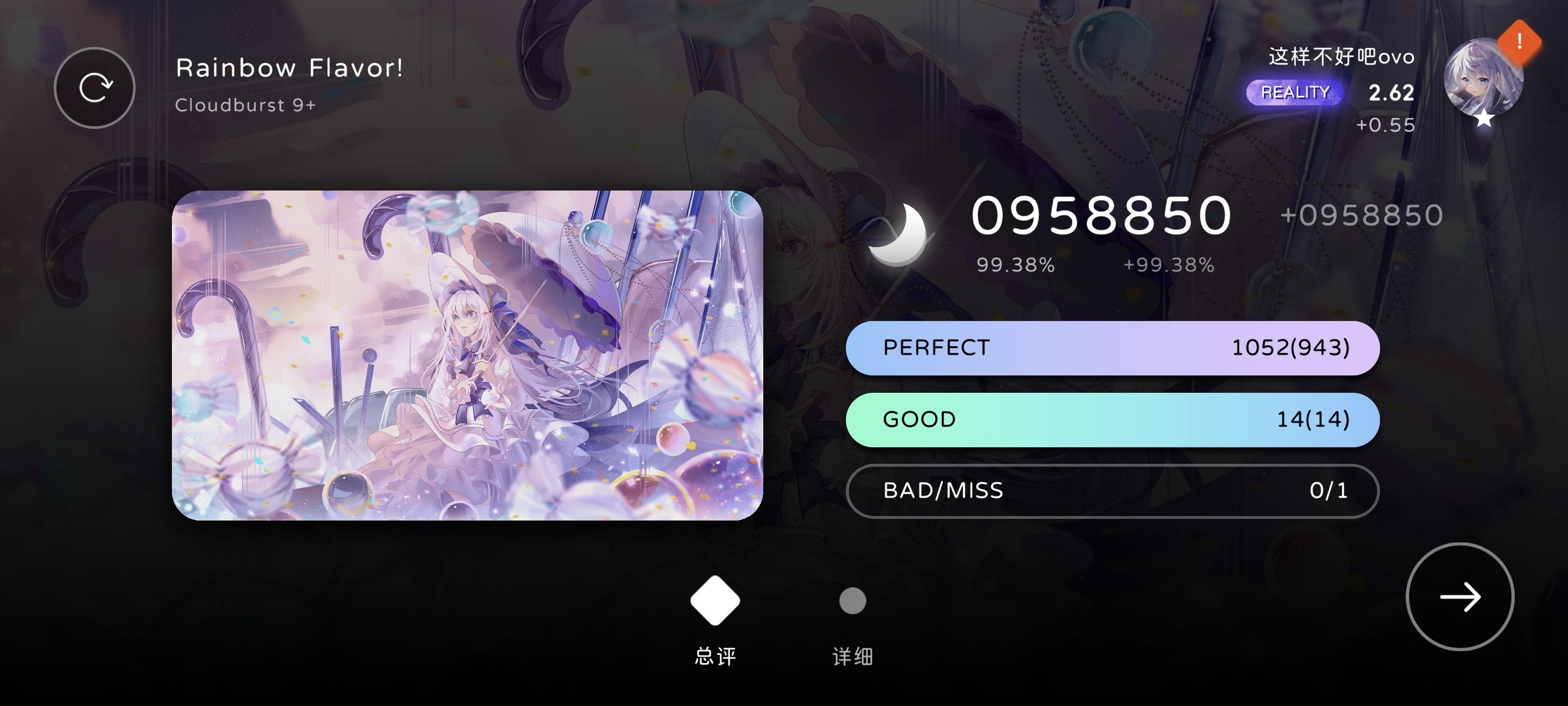 长条看了介绍也不是很懂()打了很久,就p了一首7+,准度也不是很看的懂判定,不知道是延迟没调好还是越级导致的,总之一把下来小p几乎全是late()顺便问问沉浸度是怎么加的,好像加到40%多后打歌不加了?(可能是错觉)还有就是有没有什么歌和谱子推荐()