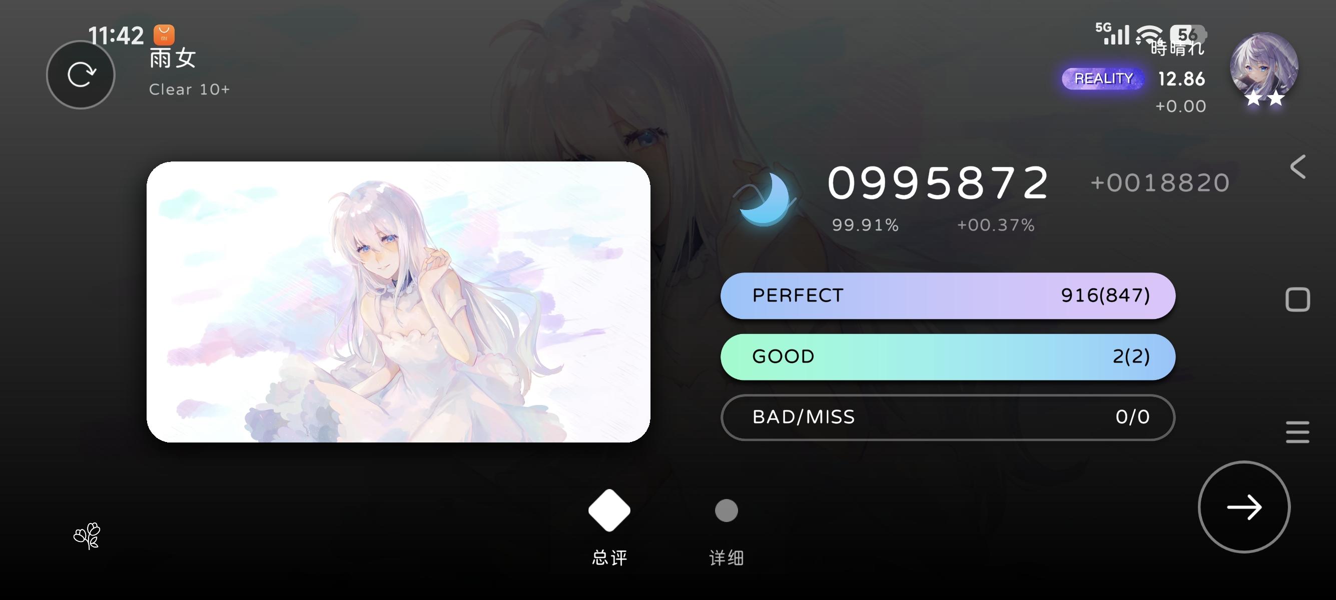 长条看了介绍也不是很懂()打了很久,就p了一首7+,准度也不是很看的懂判定,不知道是延迟没调好还是越级导致的,总之一把下来小p几乎全是late()顺便问问沉浸度是怎么加的,好像加到40%多后打歌不加了?(可能是错觉)还有就是有没有什么歌和谱子推荐()